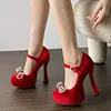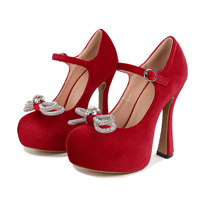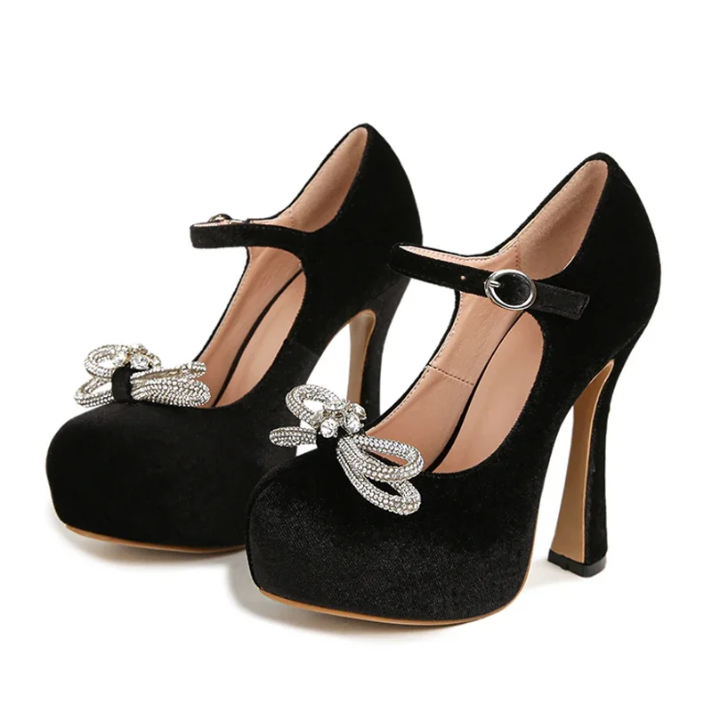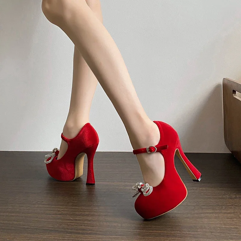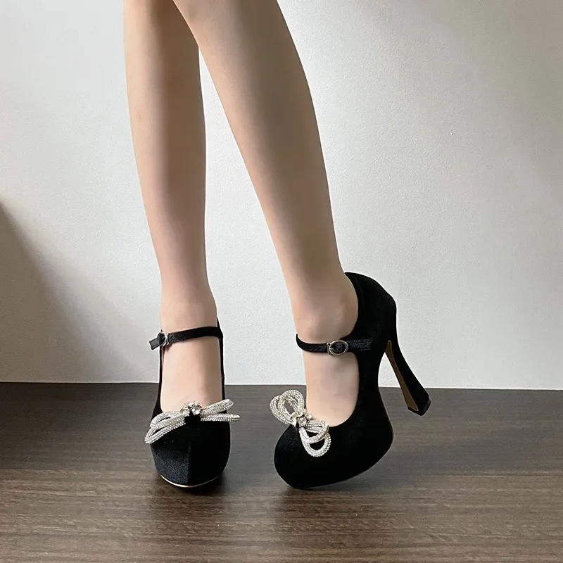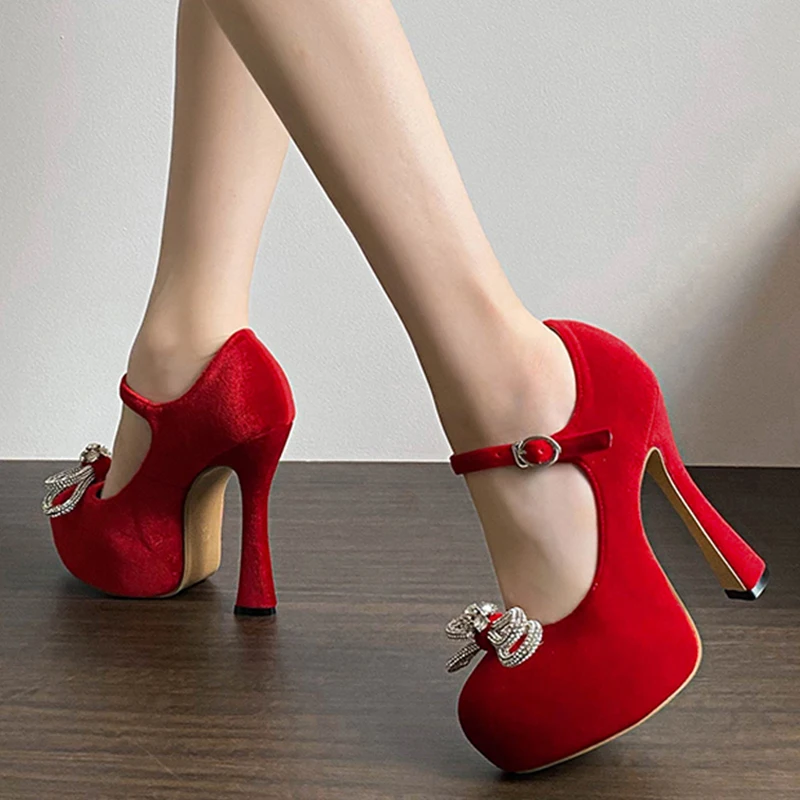 Eilyken 2025 Women Pumps Sexy Butterfly-knot Platform Square High Heels Shoes Fashion Round Toe Buckle Strap Banquet Sandals