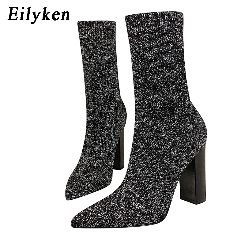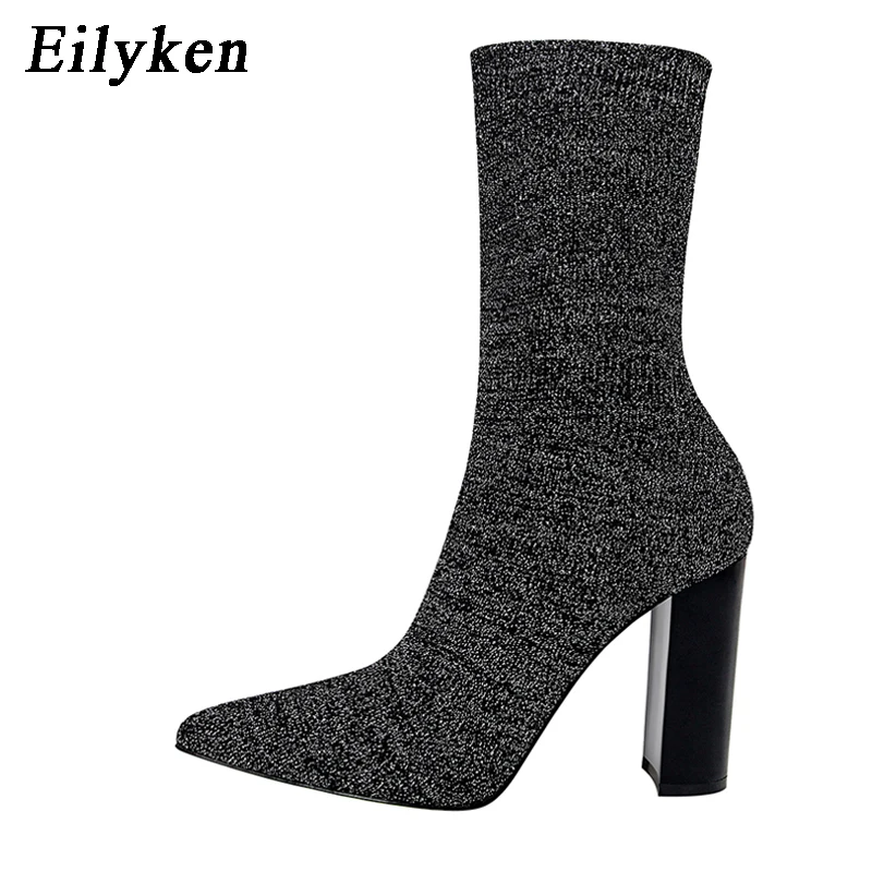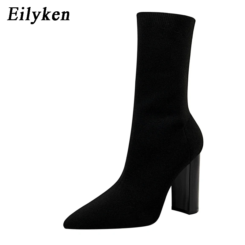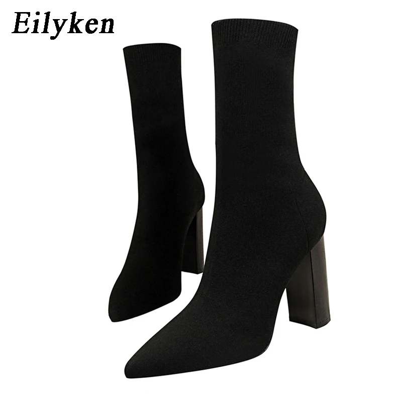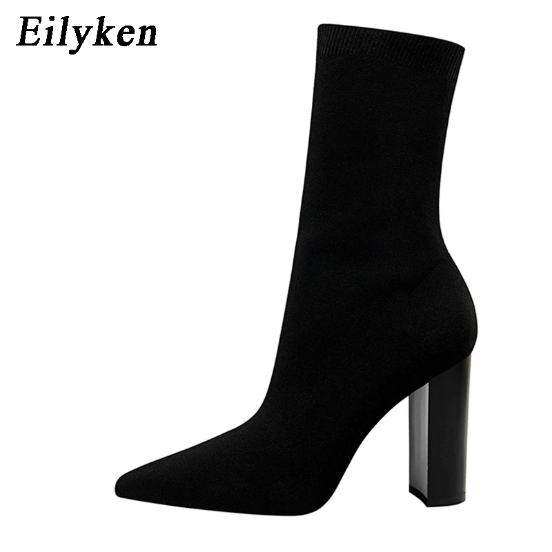 Eilyken Autumn Winter Comfort Stretch Sock Women Ankle Boots Fashion Square High Heel Pointed Toe Banquet Female Shoes