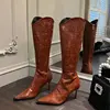 Eilyken Autumn Winter Woman Knee-High Boots Sexy Zipper Long Thin High Heels Pointed Toe Fretwork Shoes