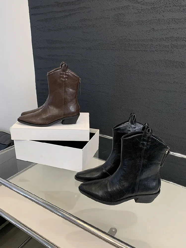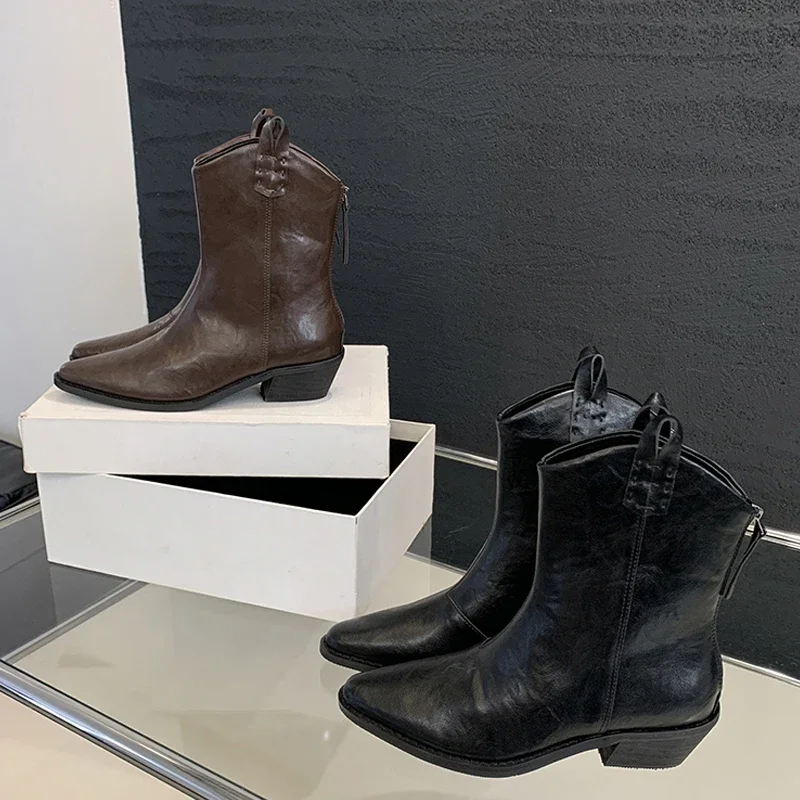 Eilyken Concise Zipper Pointed Toe Women Ankle Boots Square Low Heels Autumn Winter Chelsea Casual Short Shoes Zapatos De Muje