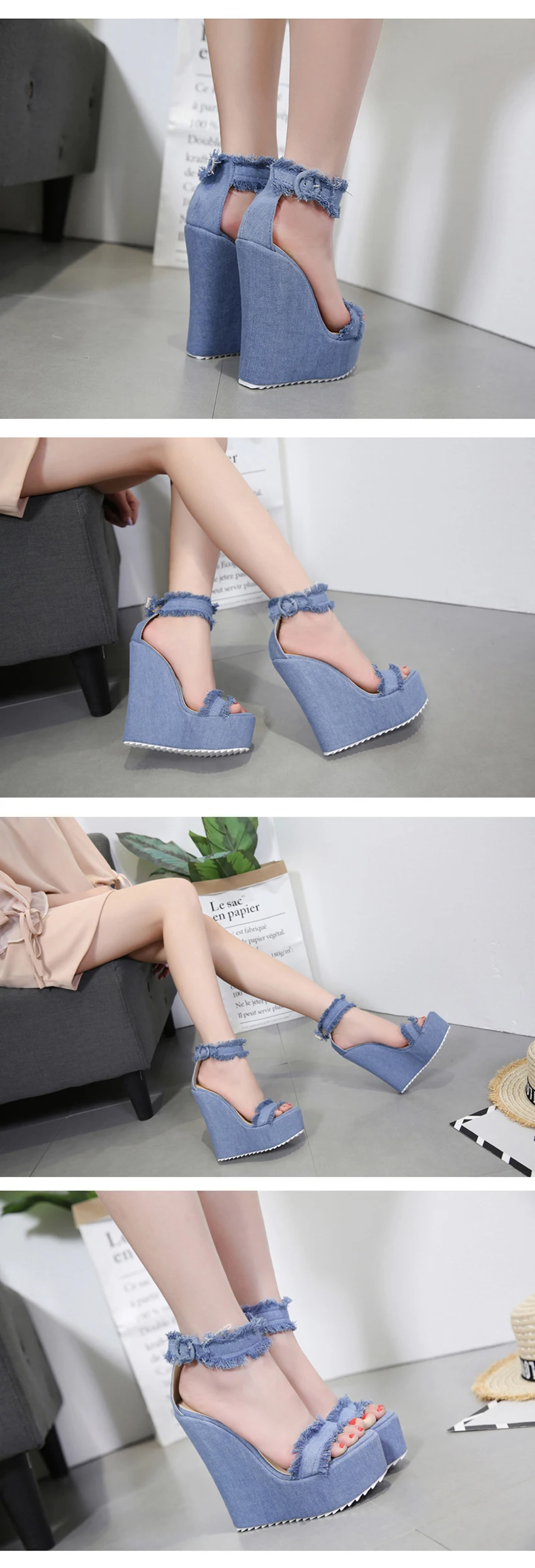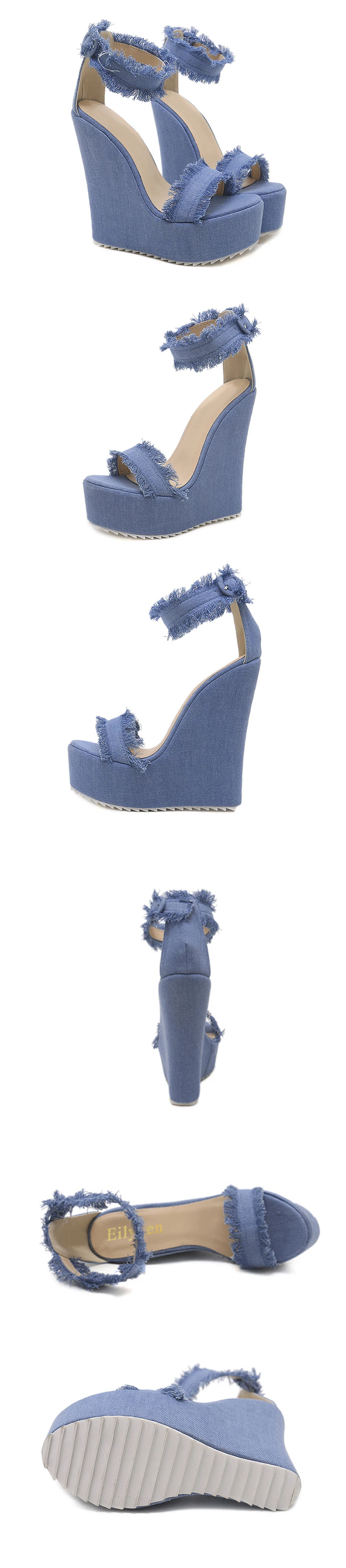 Eilyken Designer Denim Sandals Summer Woman High Quality Wedges High Heels Peep Toe Platform Roman Shoes
