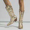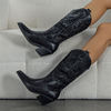 Eilyken Designer Embroidery Knee-High Boots Women Handmade Western Cowboy Booties Street Low Heels Shoes Zapatos De Mujer