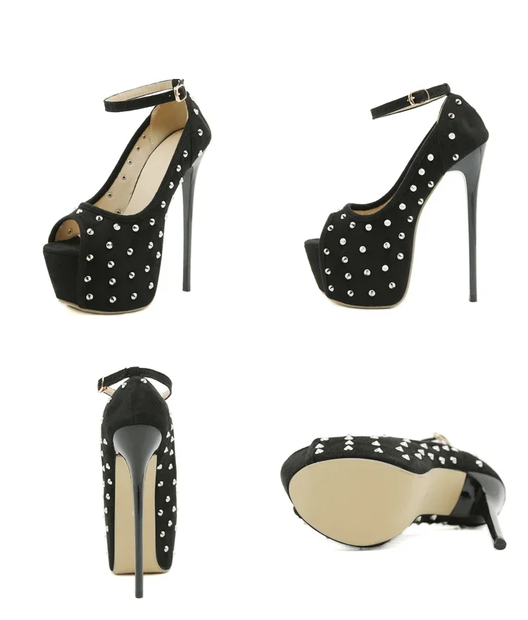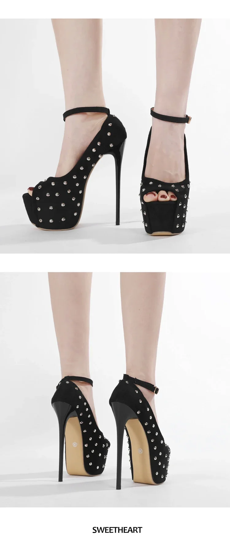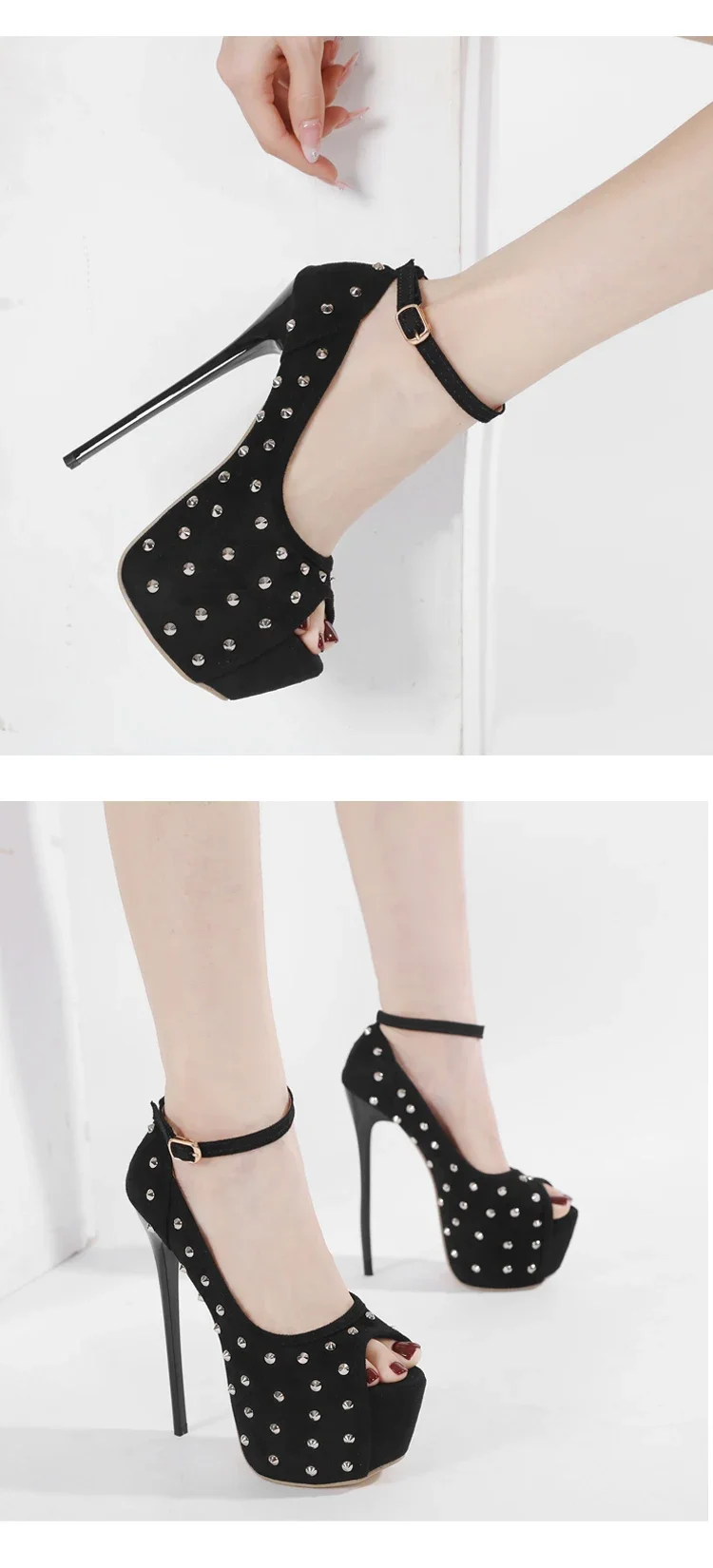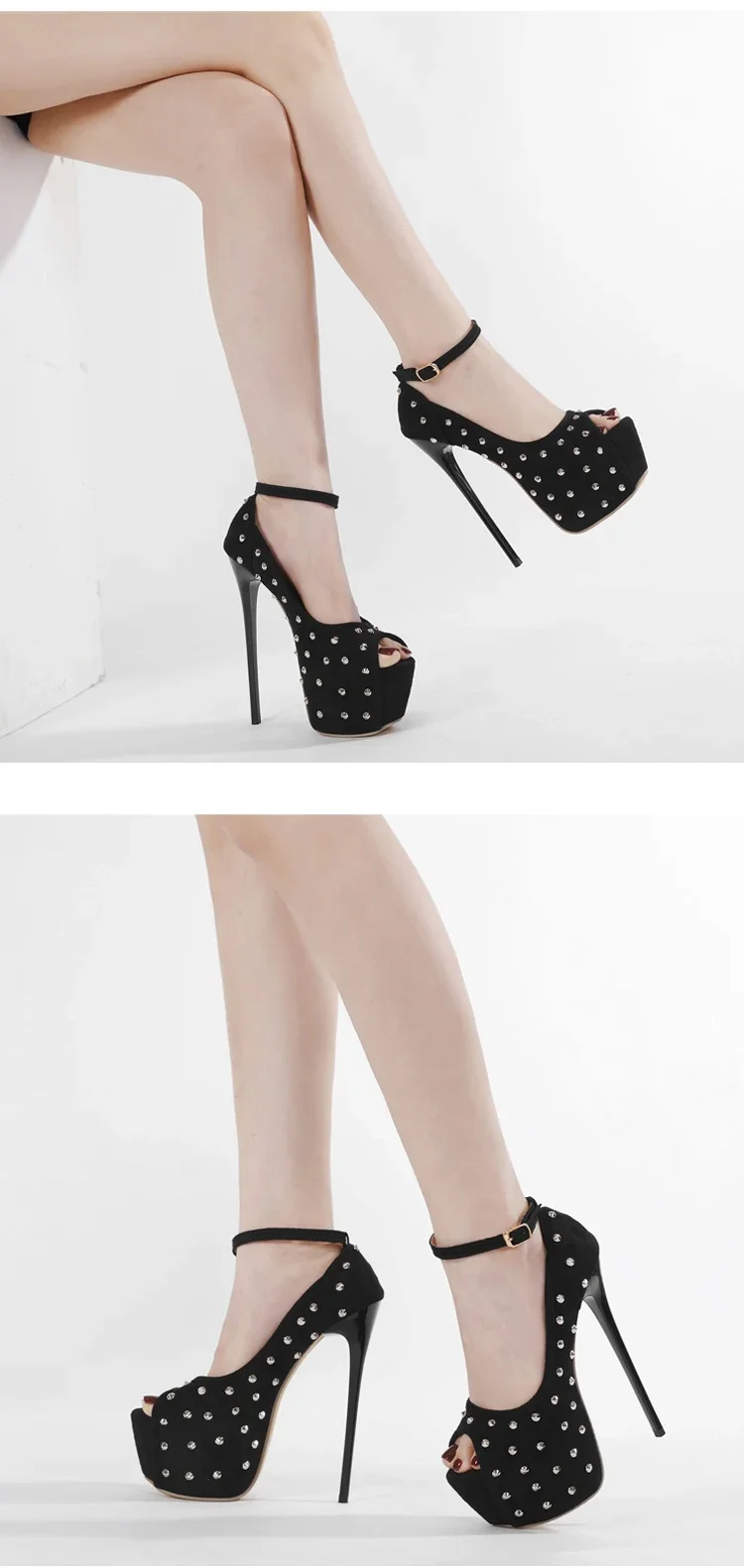 Eilyken Elegant Super Thin High Heels Women Sandals Design Style Rivet Platform Peep Toe Buckle Strap Nightclub Party Shoes