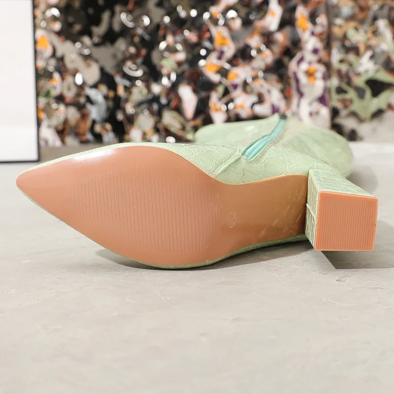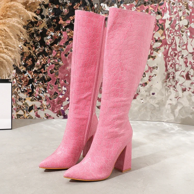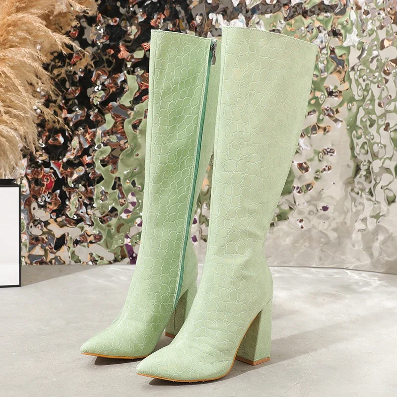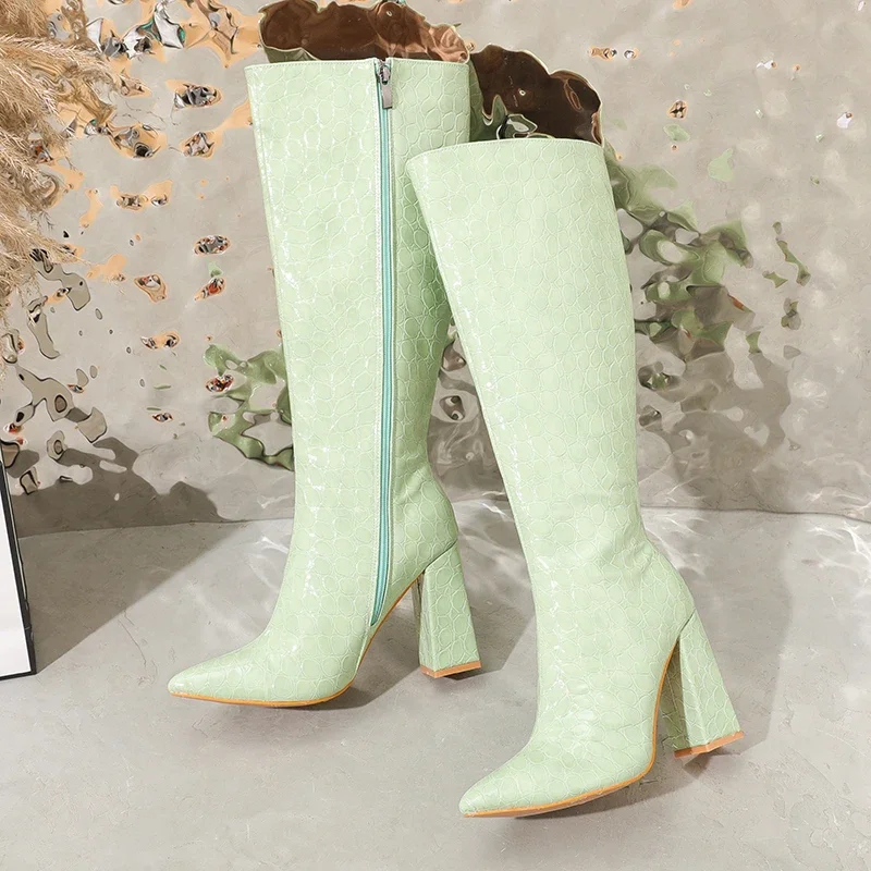 Eilyken Fashion Candy Women Long Boots Pointed Toe Knee-High Booties Winter Ladies High Heels Sexy Banquet Shoes