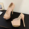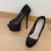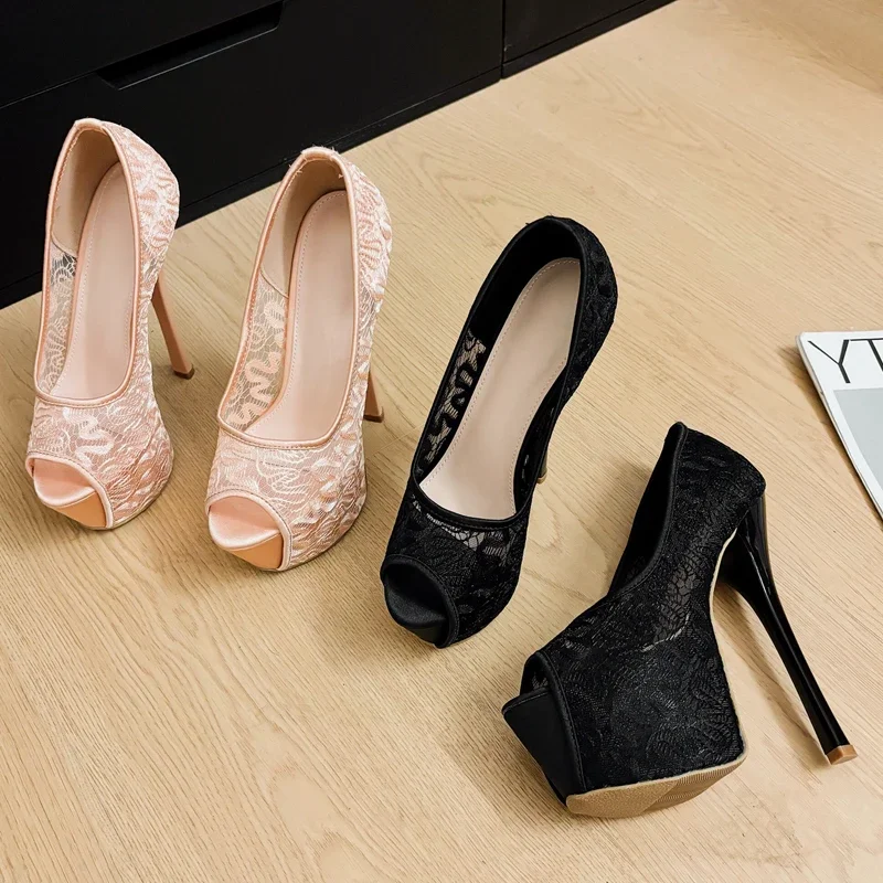 Eilyken Fashion Lace Mesh Peep Toe Platform Pumps Women High Stiletto Heels WEDDING Party Stripper Shoes Zapatillas De Mujer