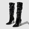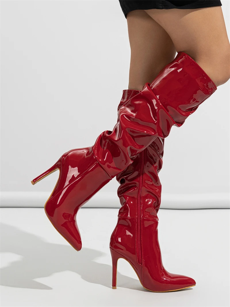 Eilyken Fashion Patent Leather Women Knee High Boots Sexy Pointed Toe Thin Heels Zipper Ladies Long Female Shoes Zapatos Mujer