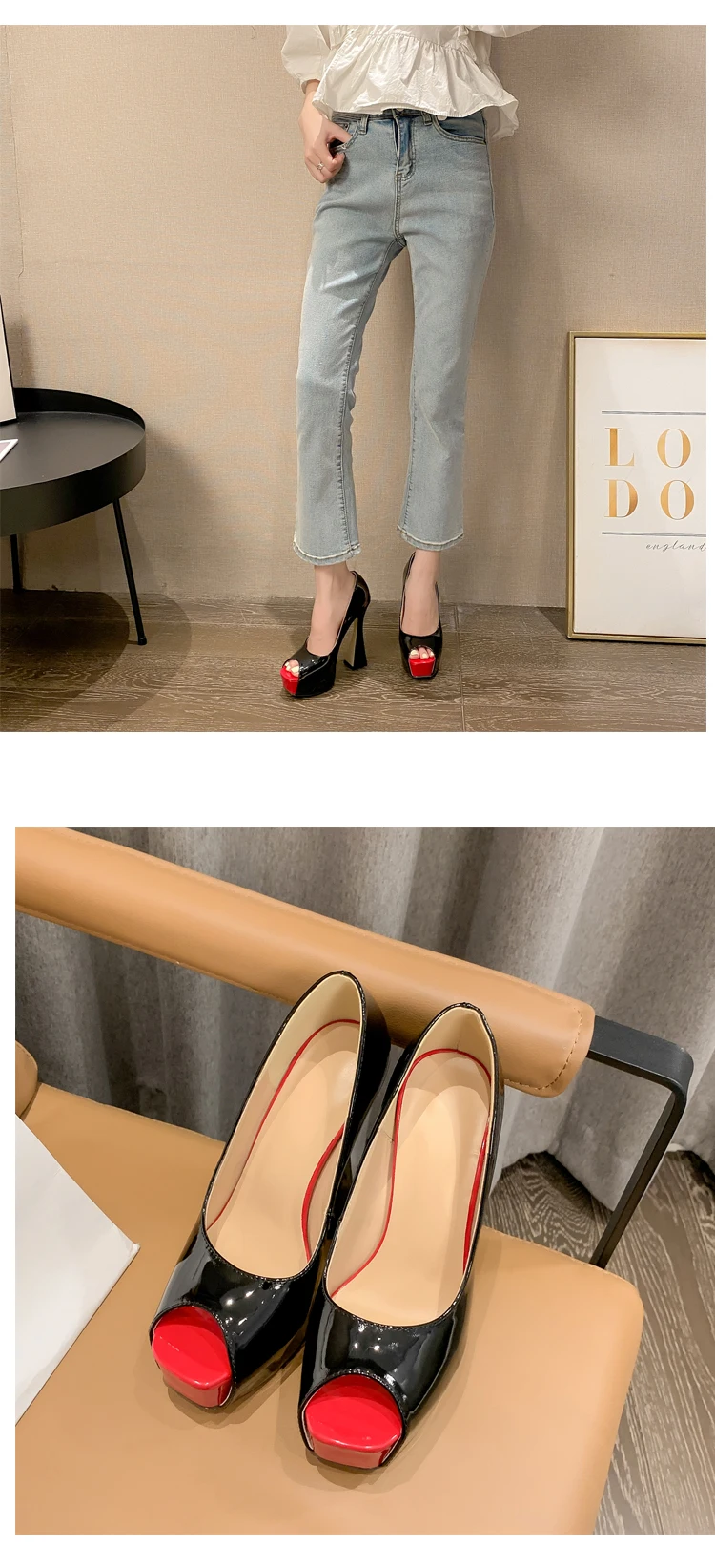 Eilyken Fashion Peep Toe Pumps Women Solid Platform Party Wedding 13CM Ultra High Heels Shoes Size 41