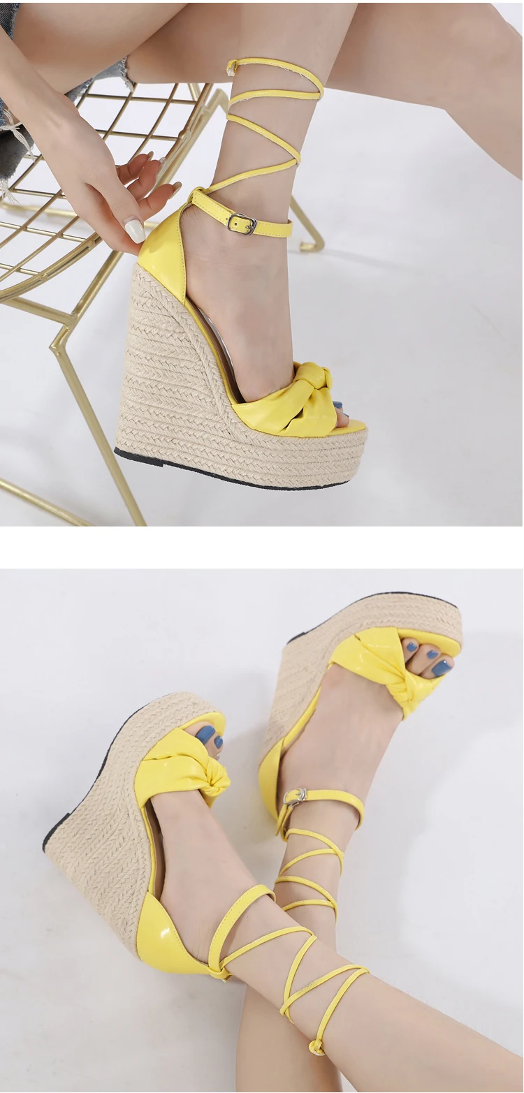 Eilyken Fashion Solid Platform Wedges Sandals Women Design Buckle Strap Cane Weave Summer Peep Toe Ladies Shoes