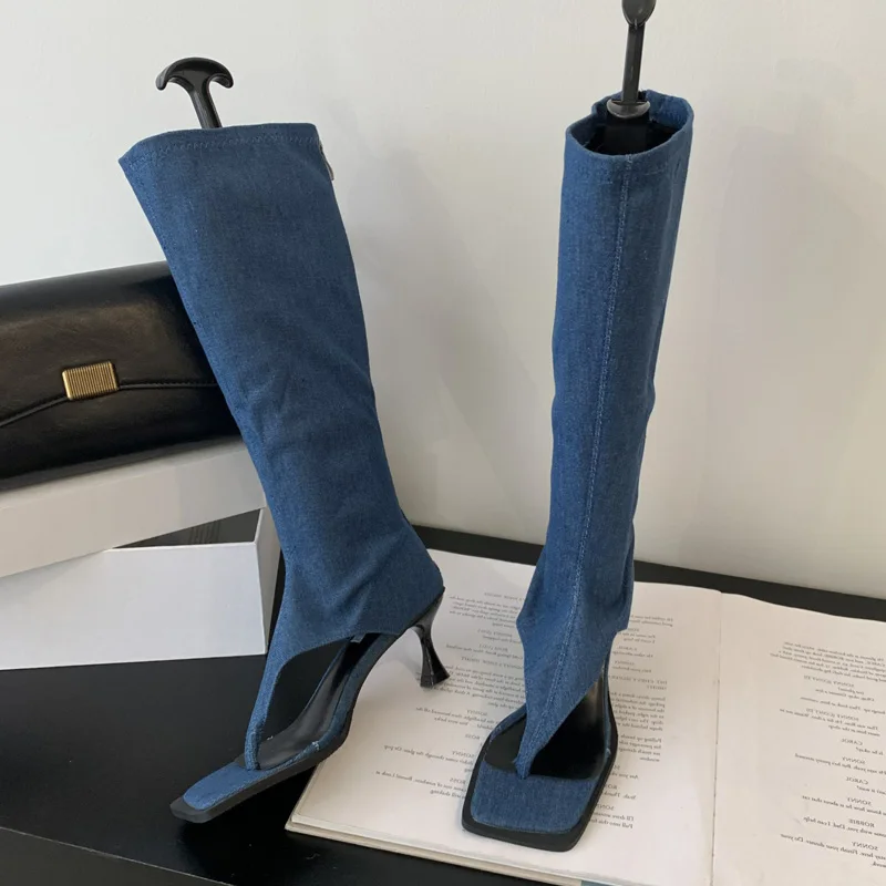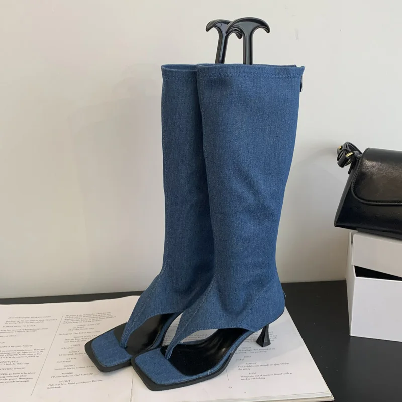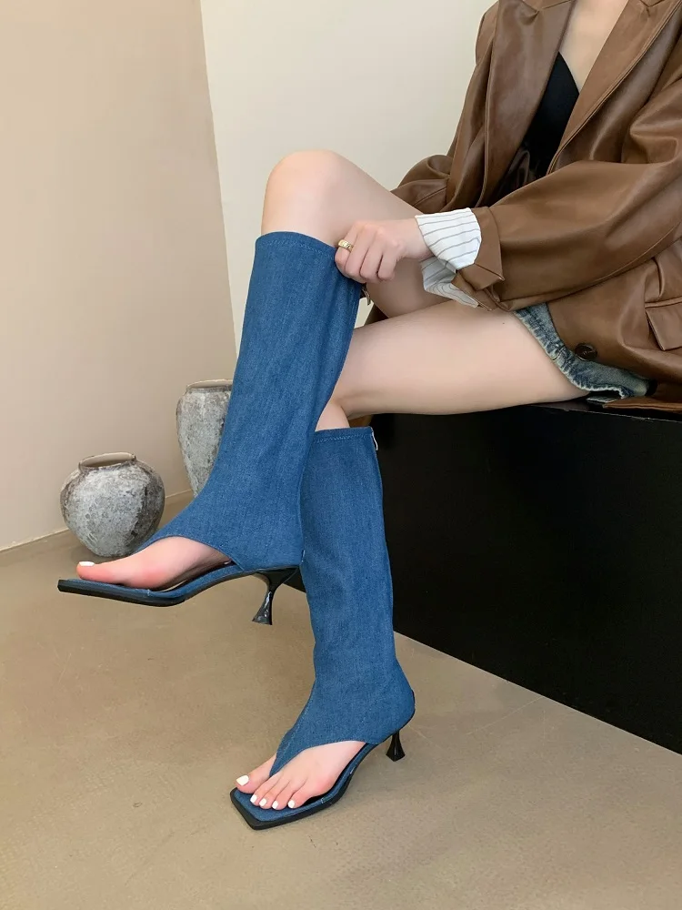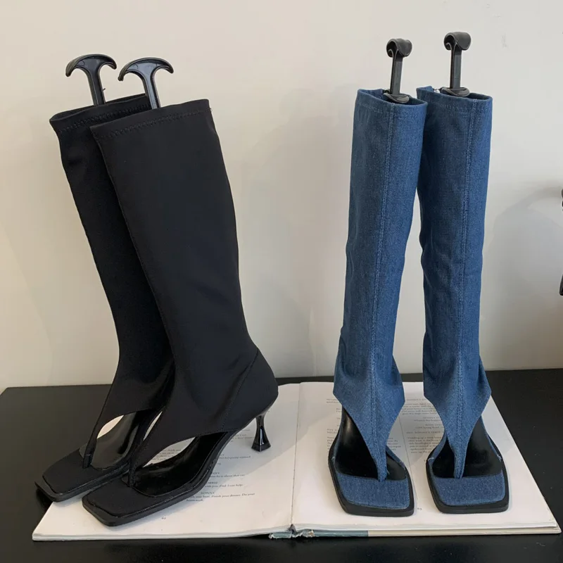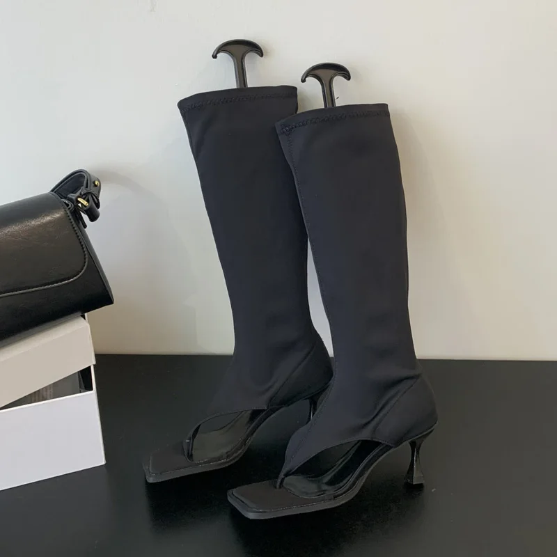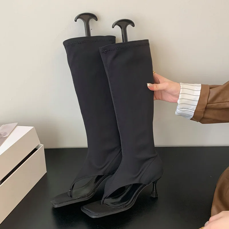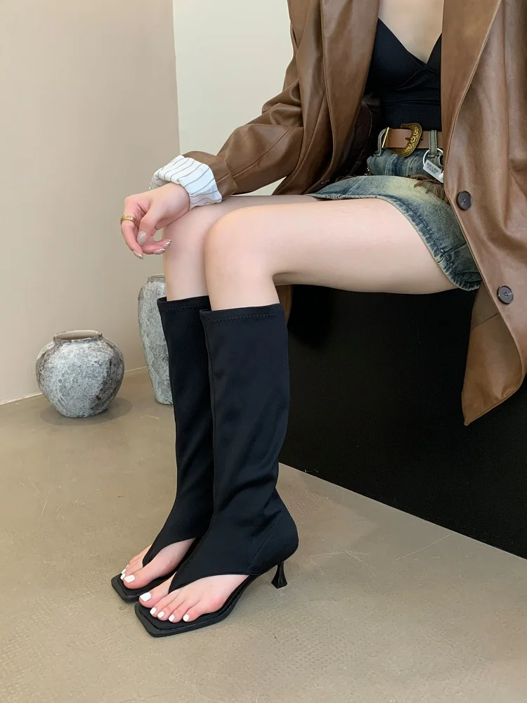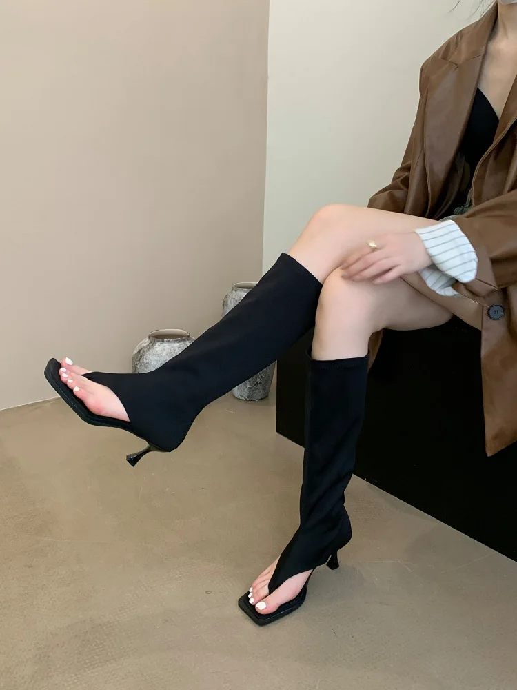 Eilyken Fashion Spring Autumn Stretch Boots Women’s Boots Sandals Peep Toe Low Heel Ankle Strap Hollow Out Street Style Shoes