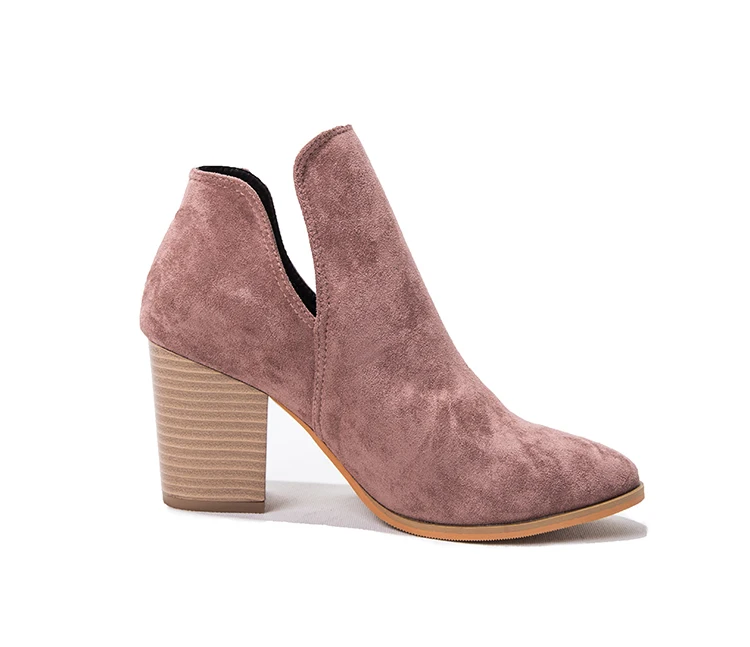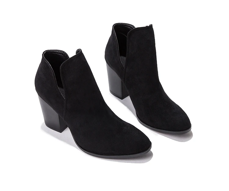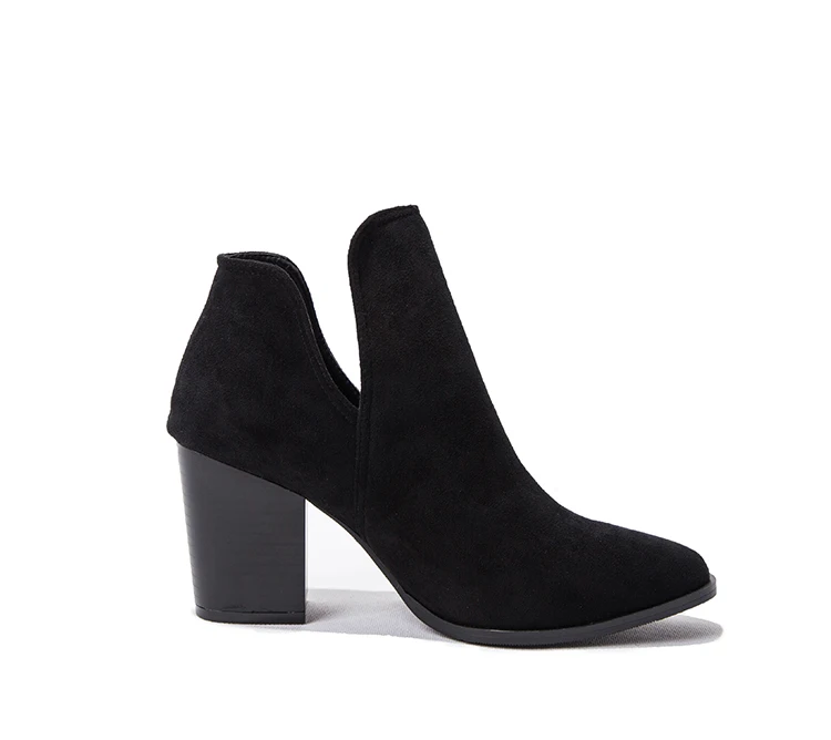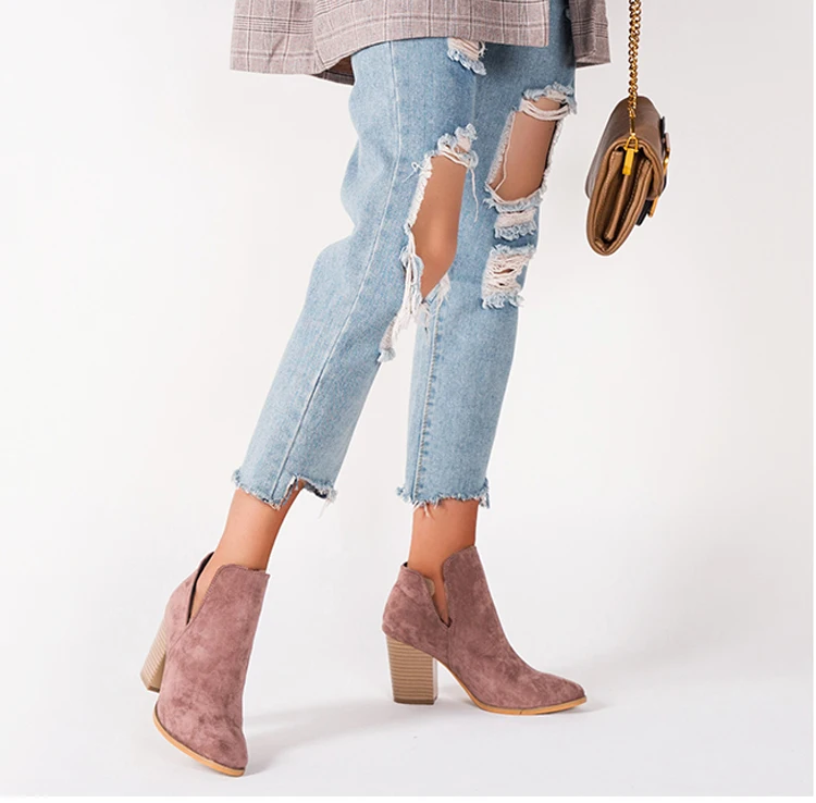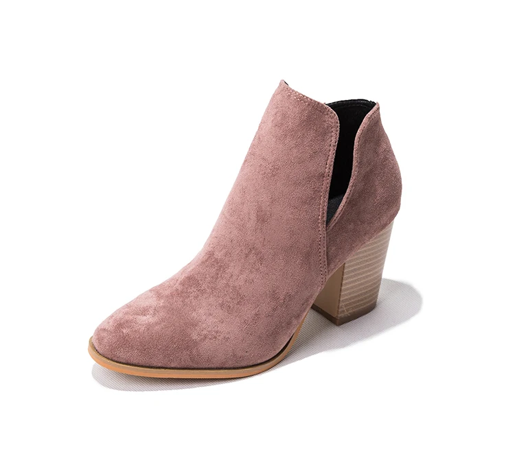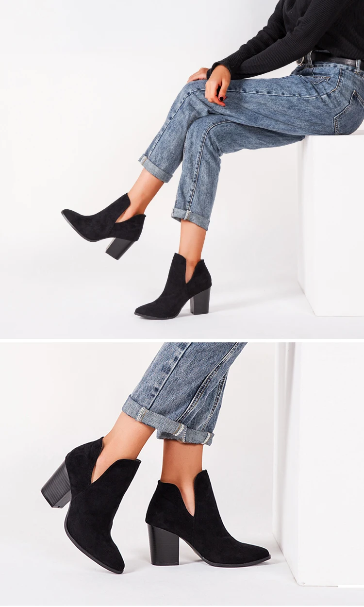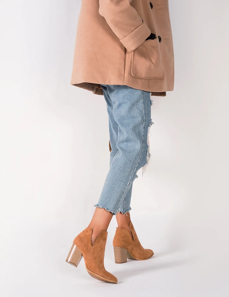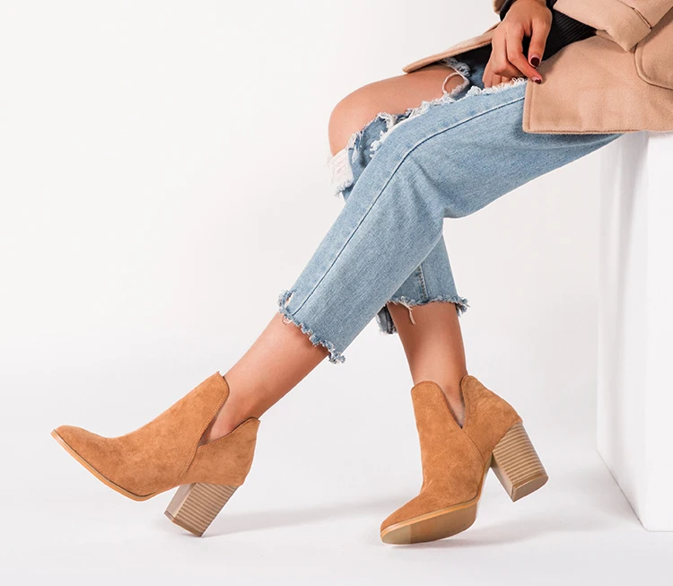 Eilyken Faux Suede Ankle Boots Women High Heel Side Stacked Block Heel Slip On Short Western Cowboy Booties Shoes