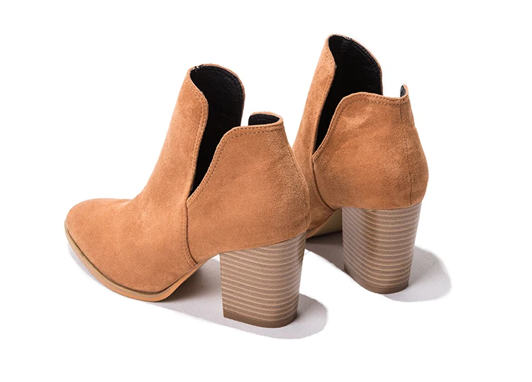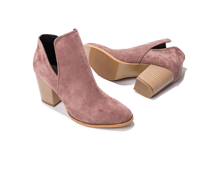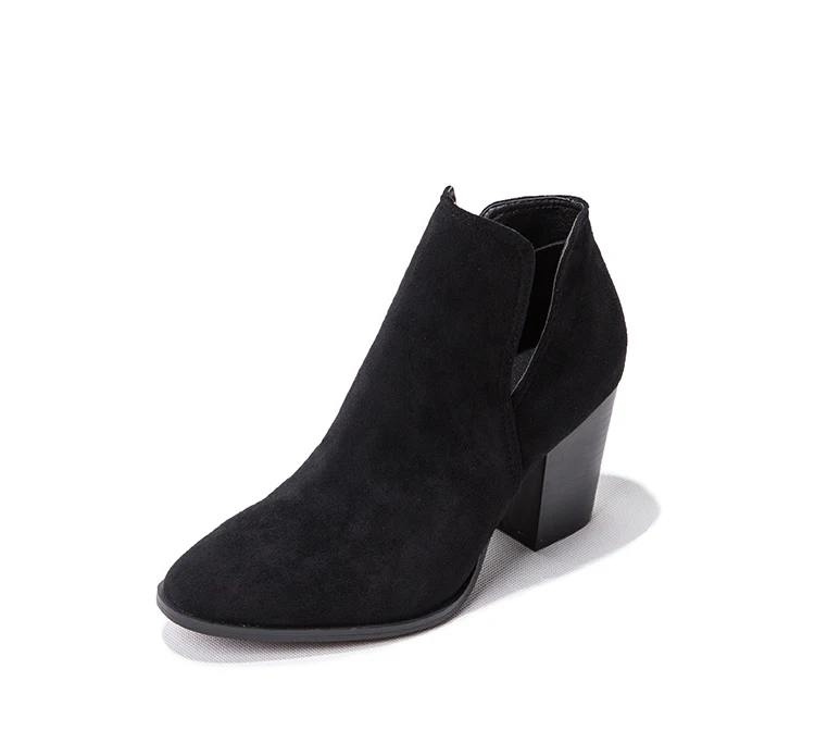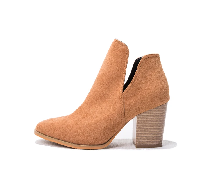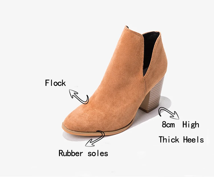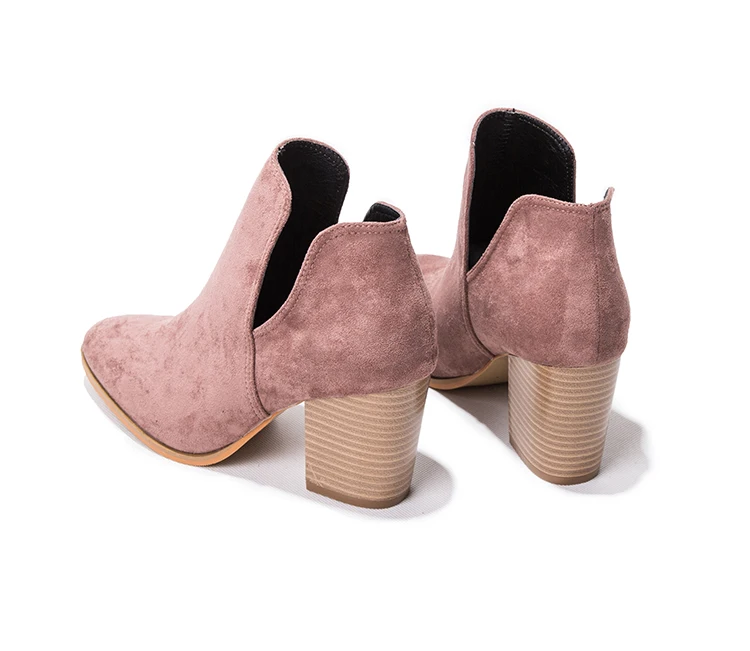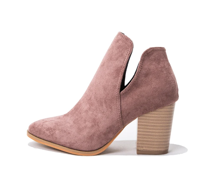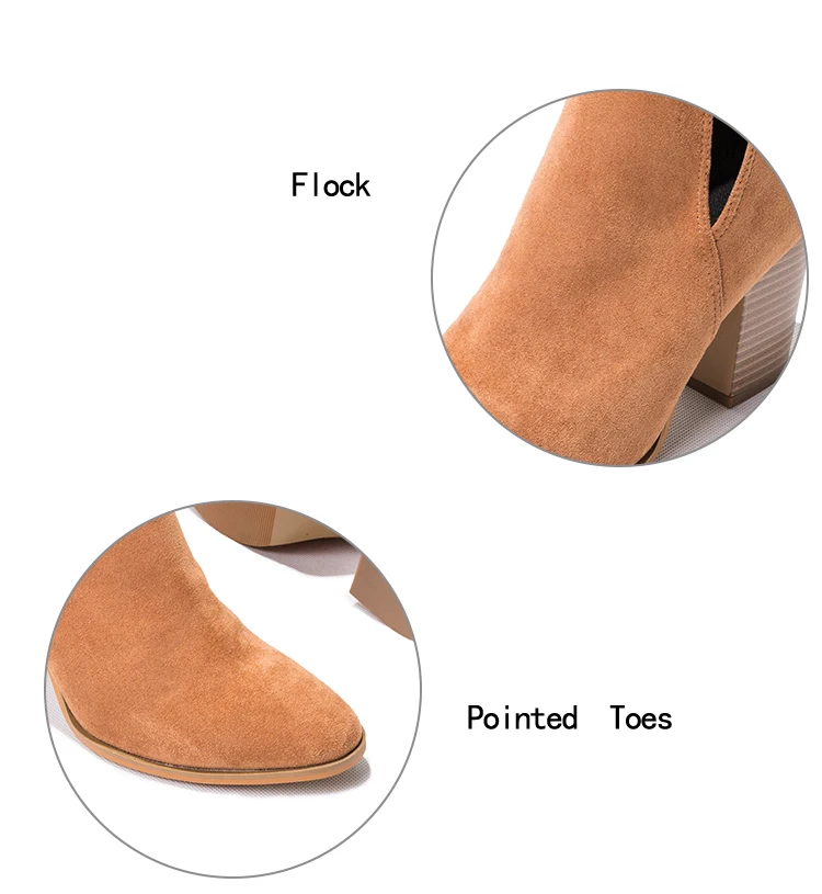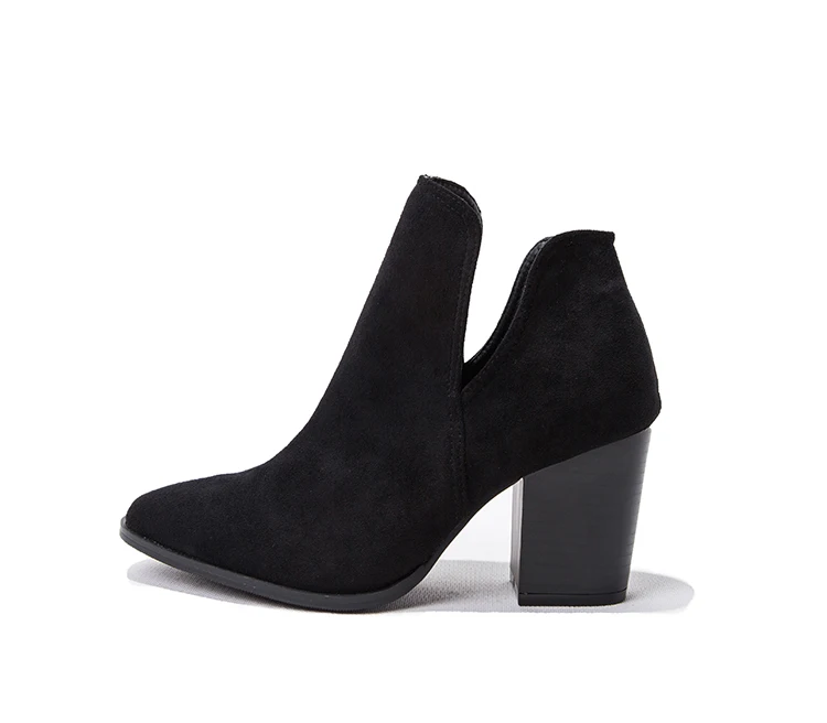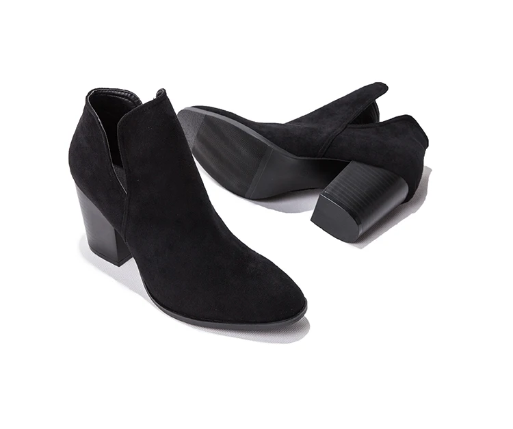 Eilyken Faux Suede Ankle Boots Women High Heel Side Stacked Block Heel Slip On Short Western Cowboy Booties Shoes