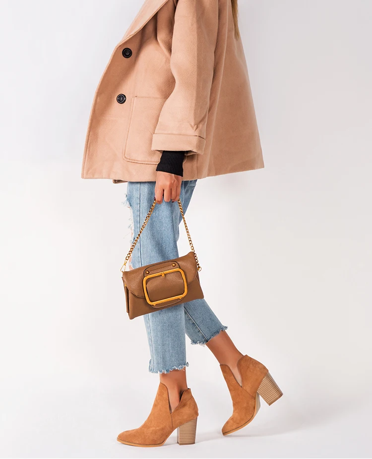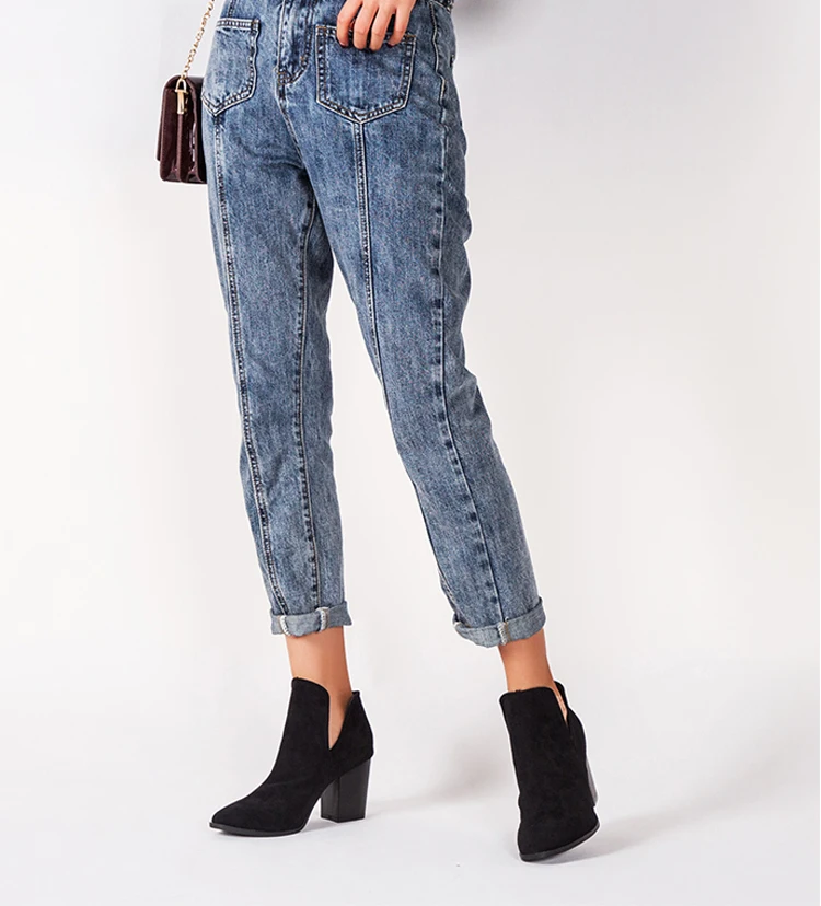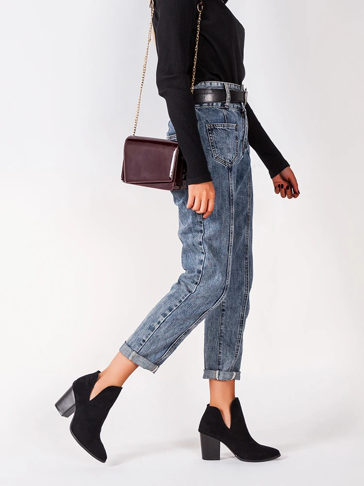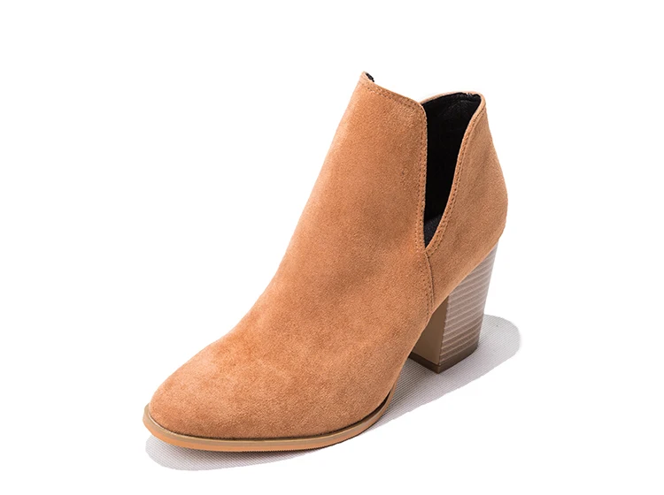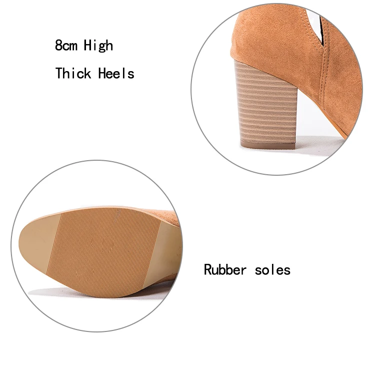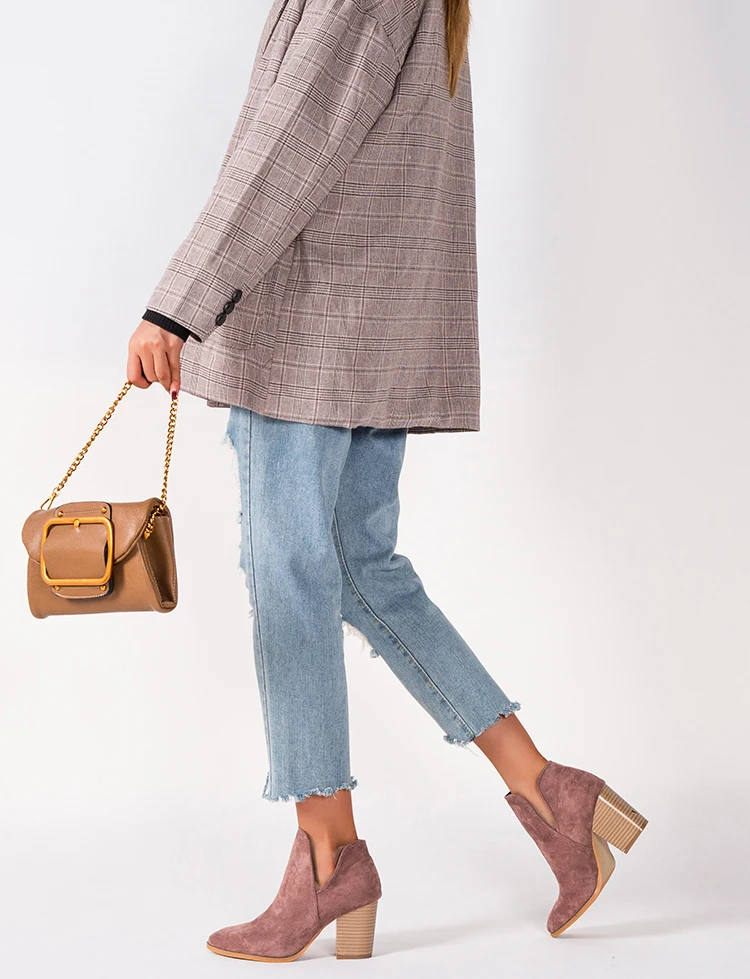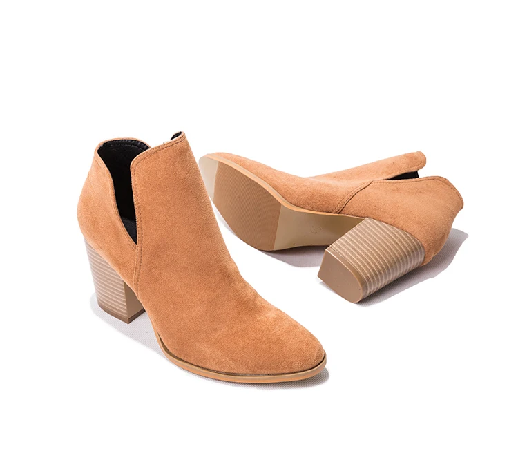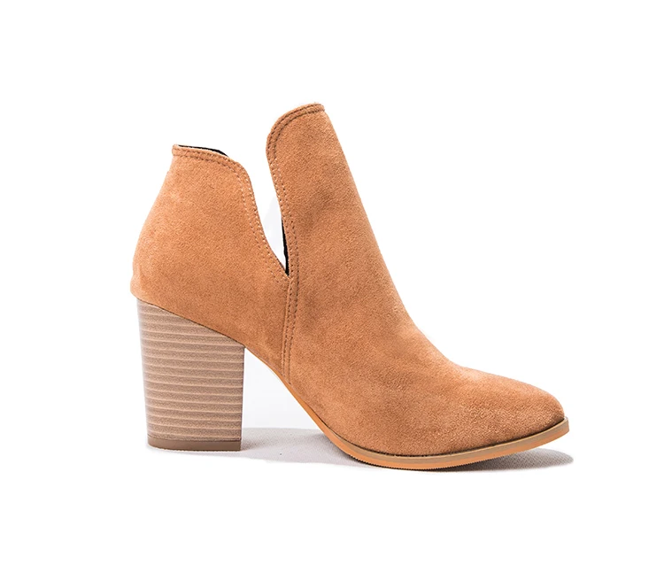Eilyken Faux Suede Ankle Boots Women High Heel Side Stacked Block Heel Slip On Short Western Cowboy Booties Shoes