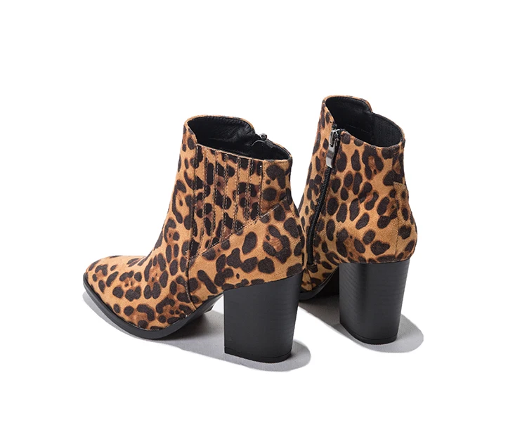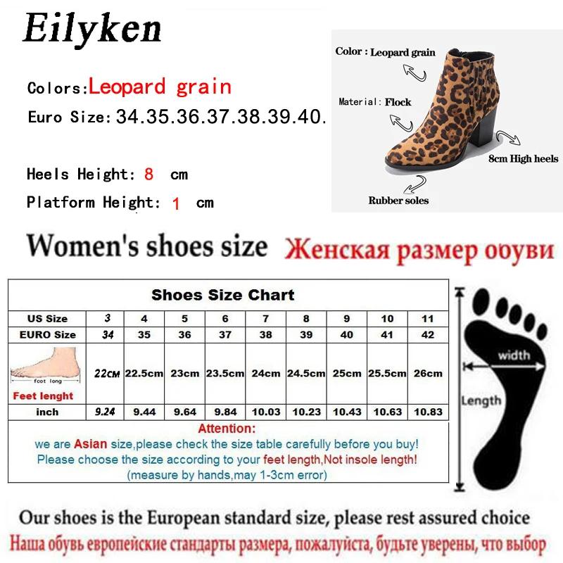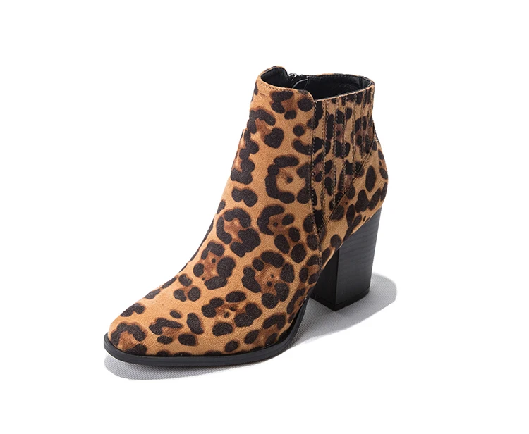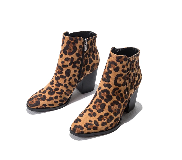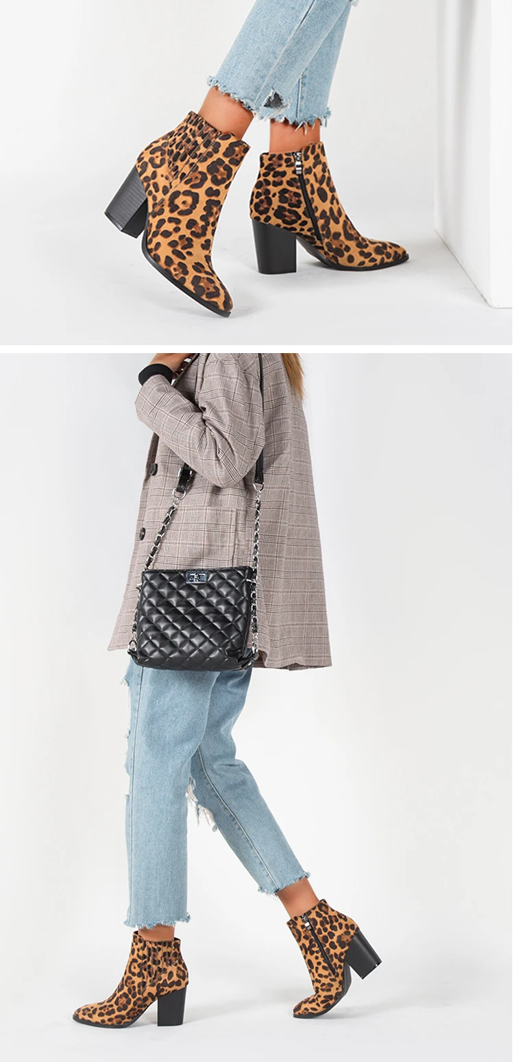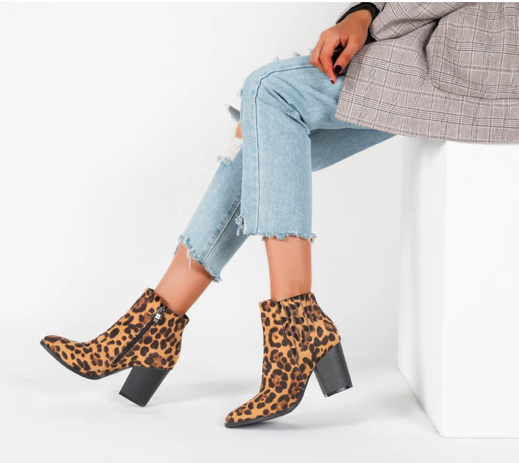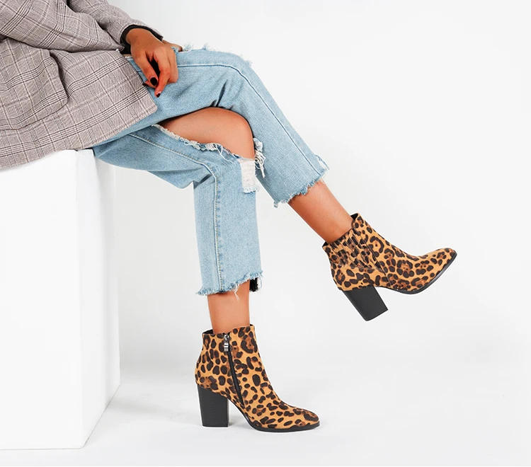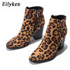 Eilyken High Quality Autumn Winter Ankle Boots for Women Leopard Print Pointed Toe Side Zip Square Heels Ladies Shoes