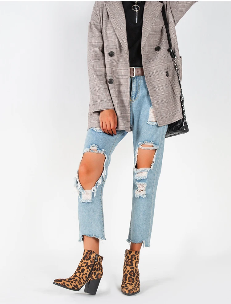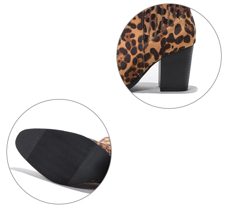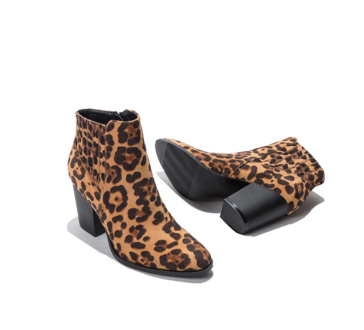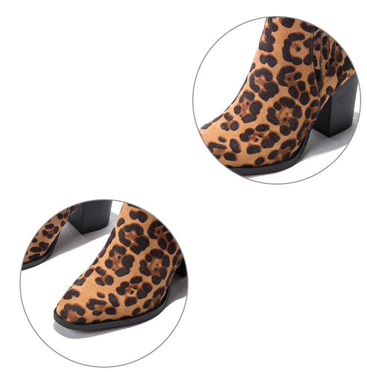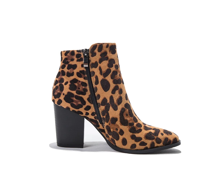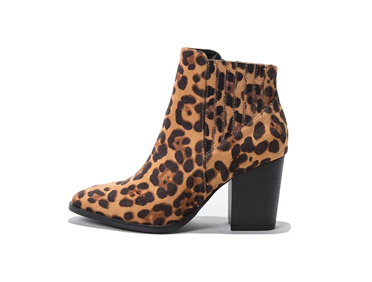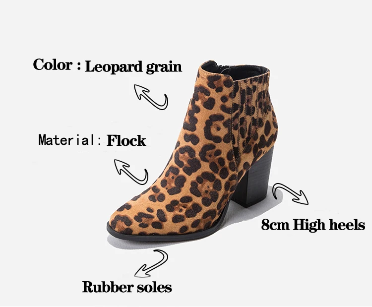 Eilyken High Quality Autumn Winter Ankle Boots for Women Leopard Print Pointed Toe Side Zip Square Heels Ladies Shoes
