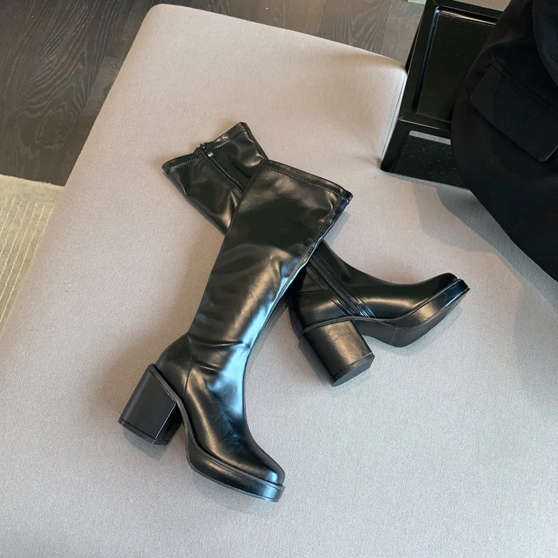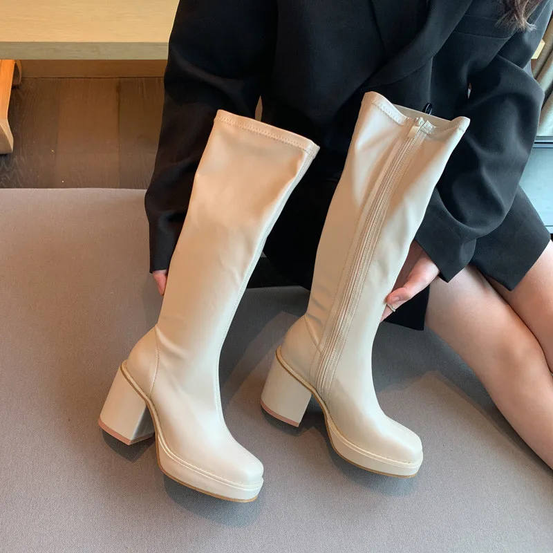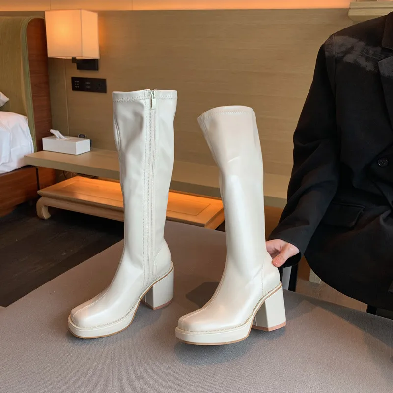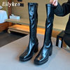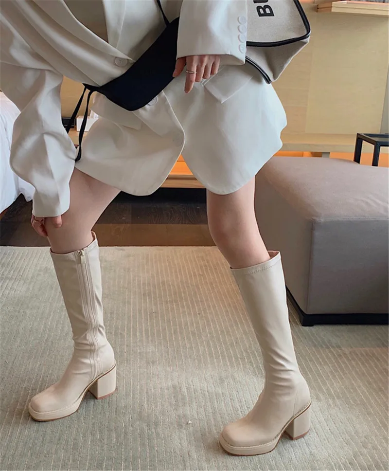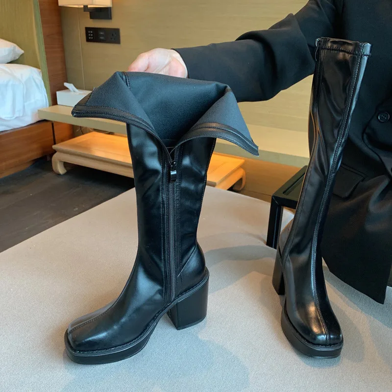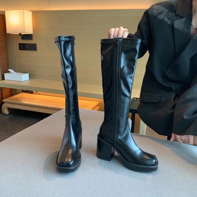 Eilyken Knee High Boots Women Square Heel Casual Winter Long Boot Shoes Ladies Round Toe Zip Fashion Cool Knight Booties