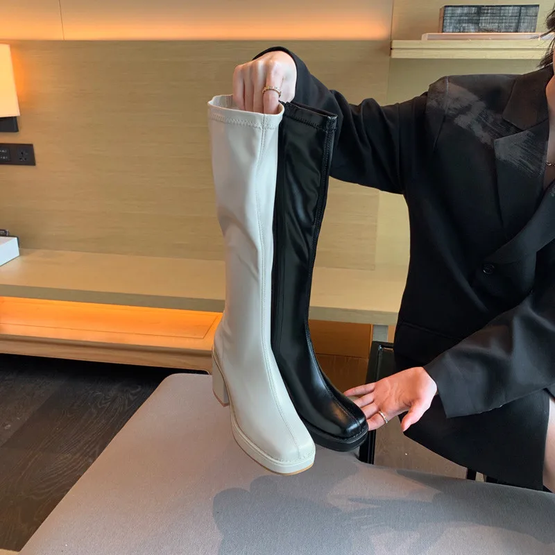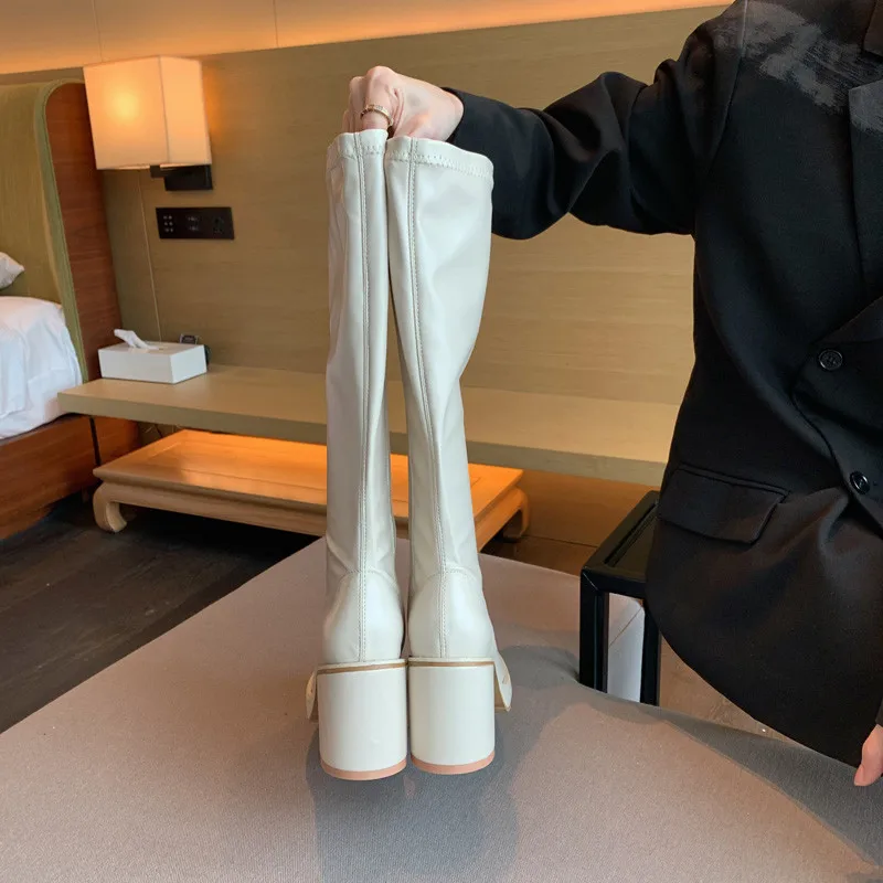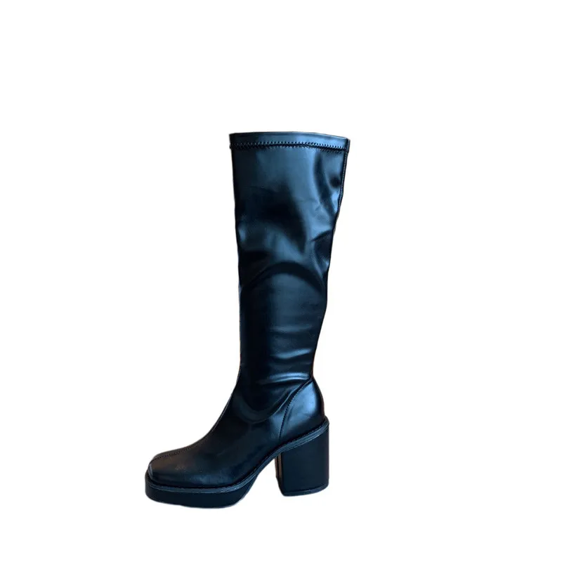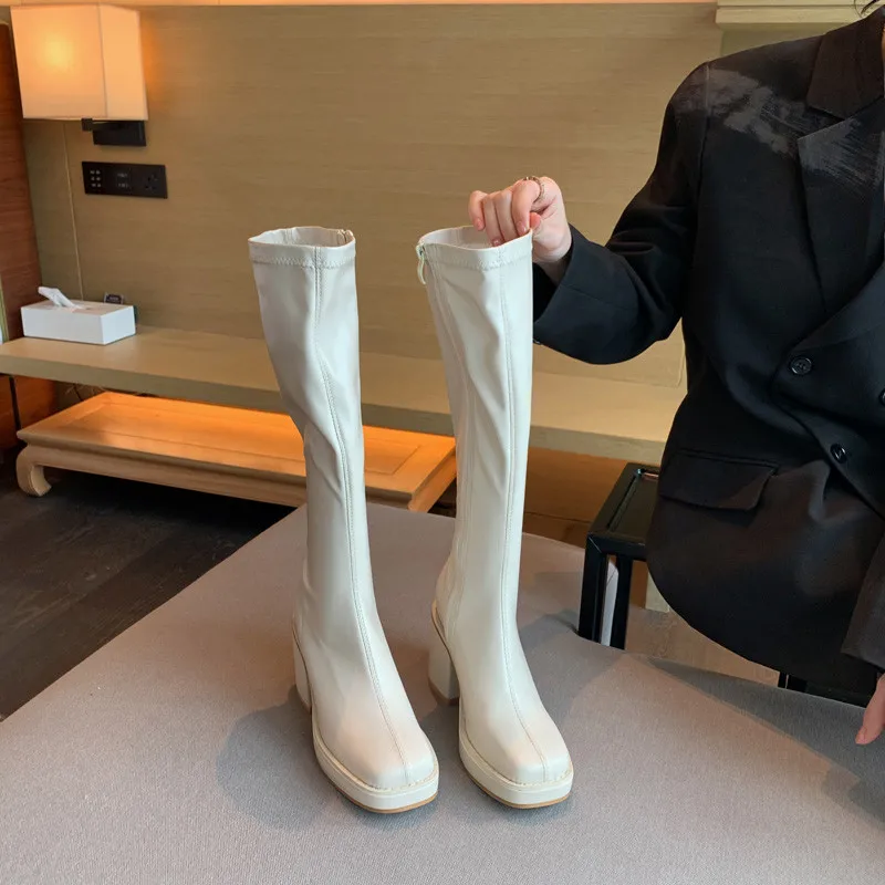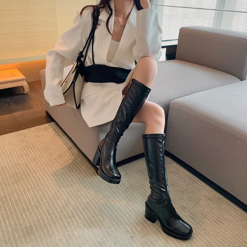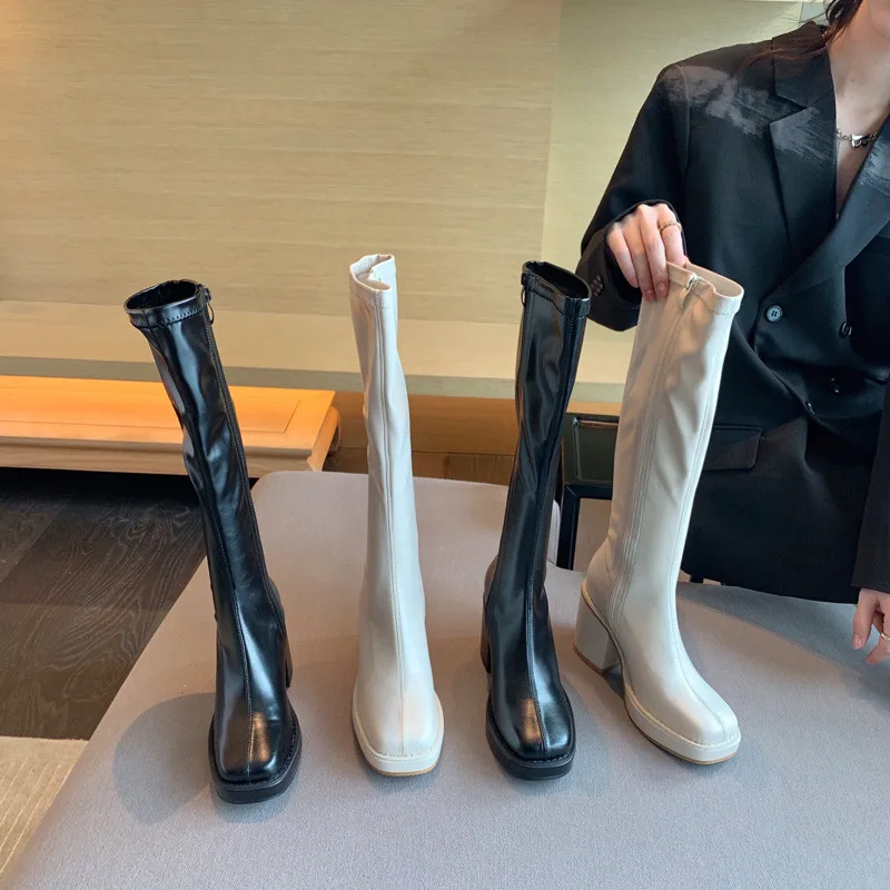 Eilyken Knee High Boots Women Square Heel Casual Winter Long Boot Shoes Ladies Round Toe Zip Fashion Cool Knight Booties