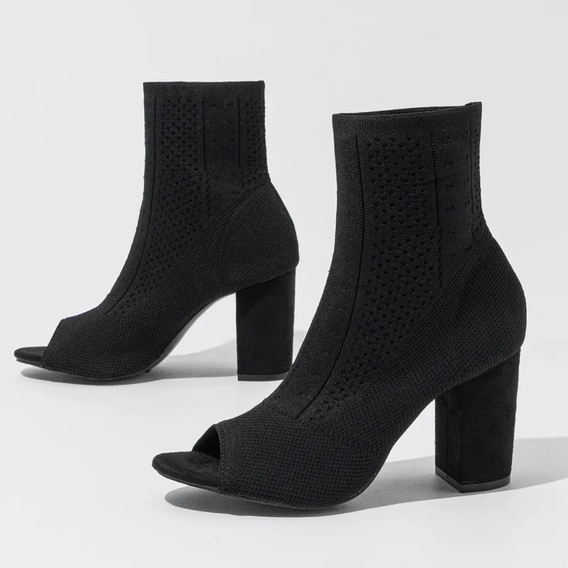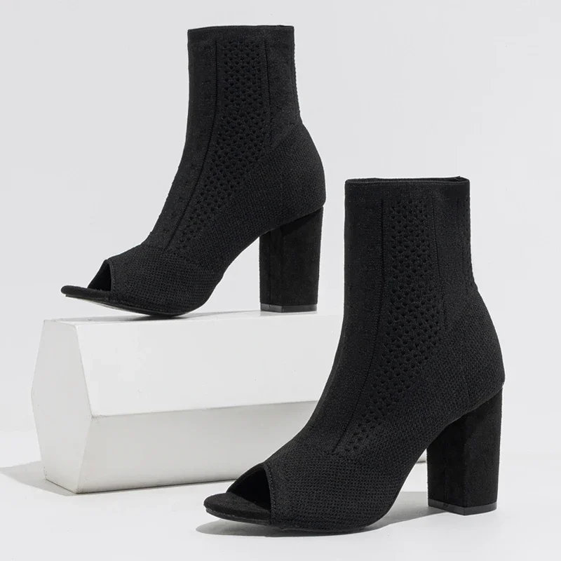 Eilyken New Design Peep Toe Cosy Stretch Fabric Women Ankle Boots Sandals Spring Square High Heels Party Ladies Shoes