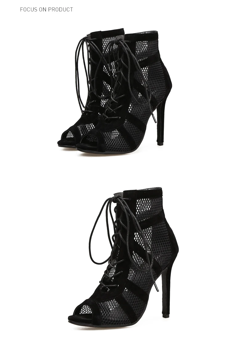 Eilyken New Fashion show Black Net Fabric Cross strap Sexy high heel Sandals Woman shoes Pumps Lace-up Peep Toe Sandals