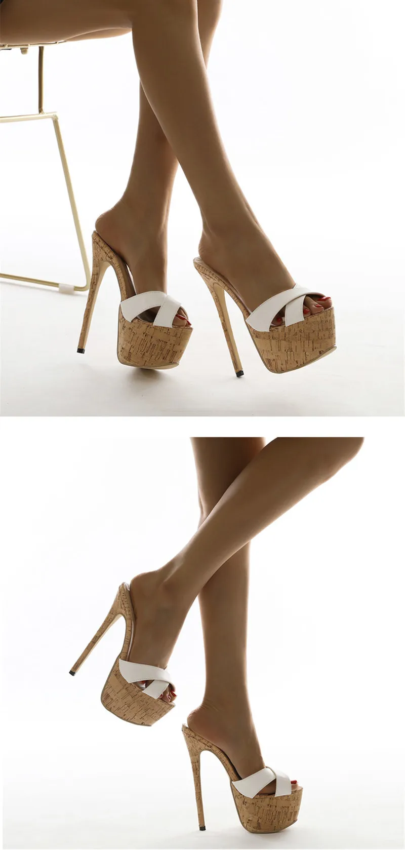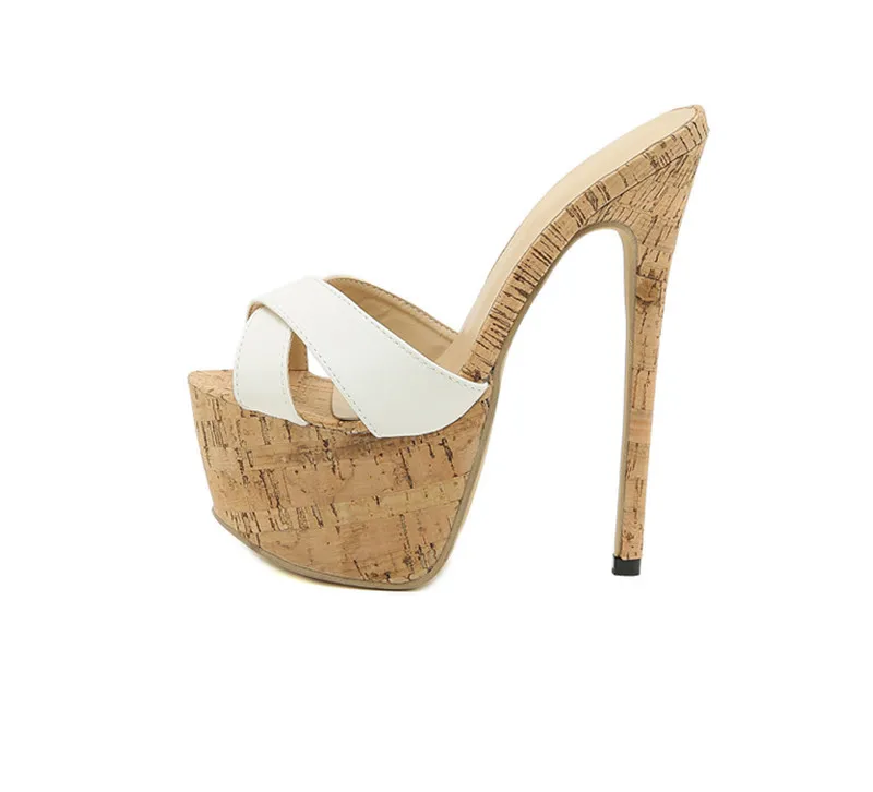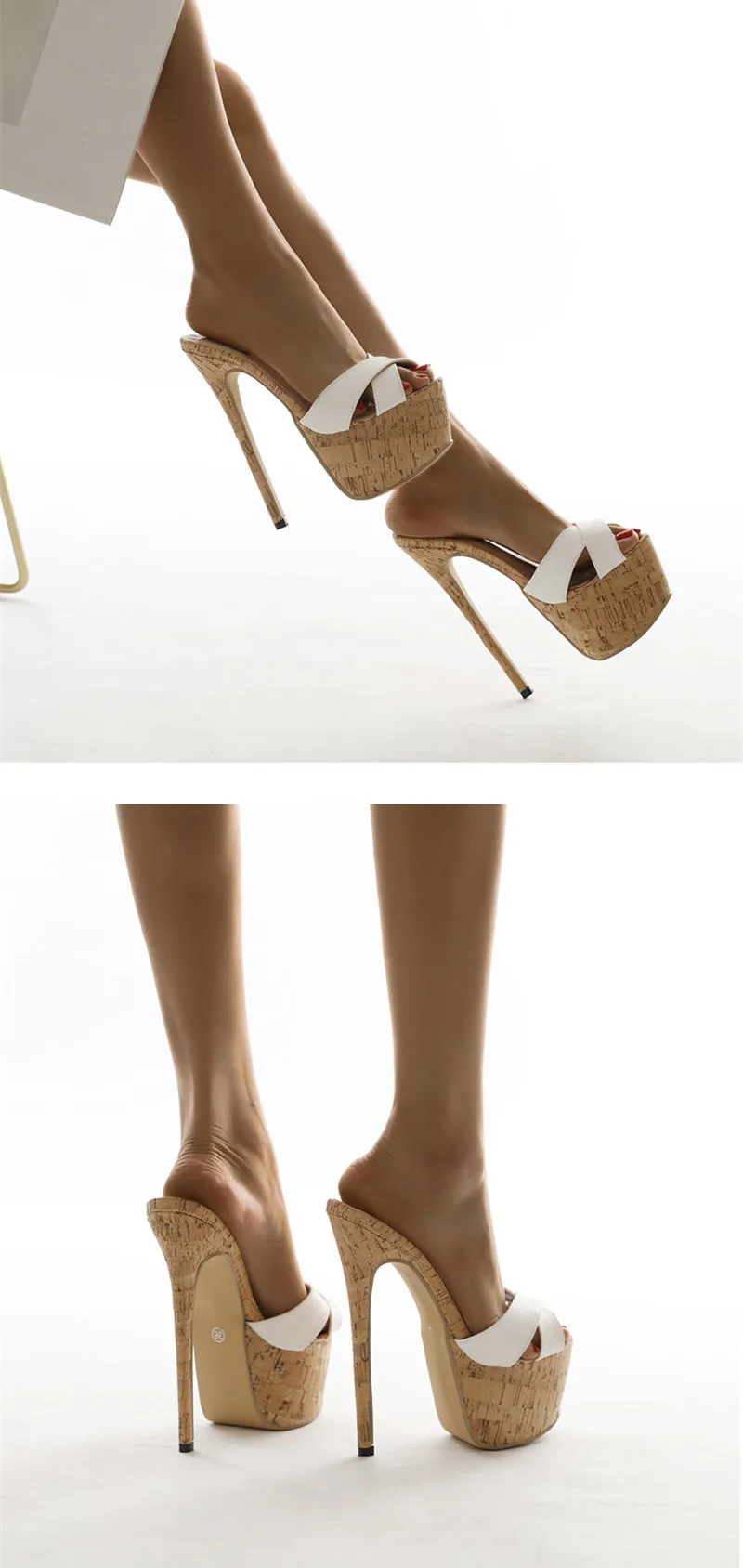 Eilyken New Sexy Super High Heels Slippers Sandals PU Leather Women outdoor Shoes Fashion Platform Open Toes Mule Shoes