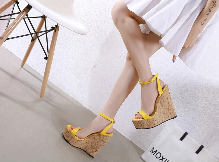 Eilyken Open Toe Ankle Strap Platform Wedges Women Sandals Super High Cover Heel Gladiator Buckle Ladies Summer Shoes