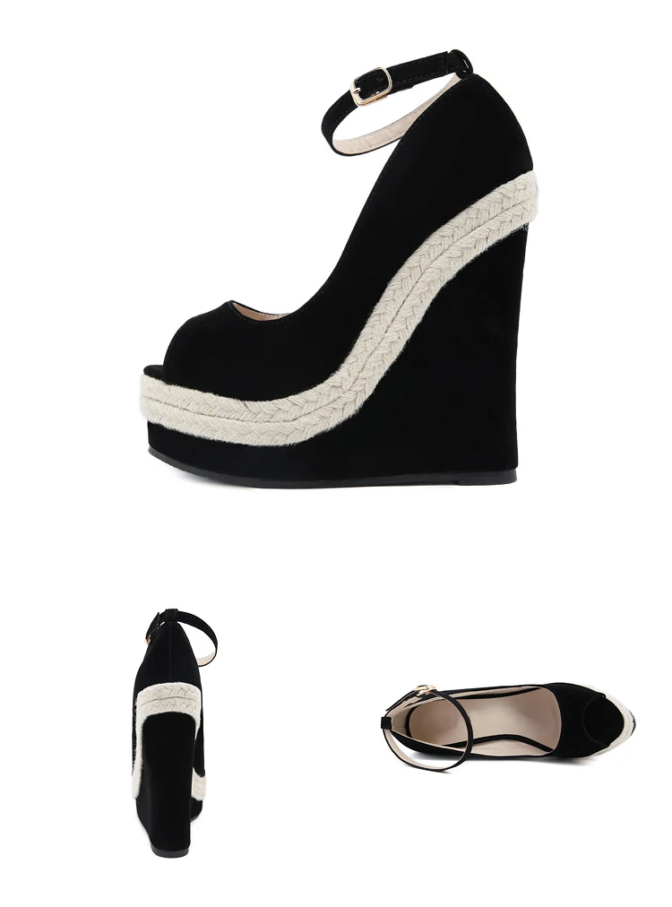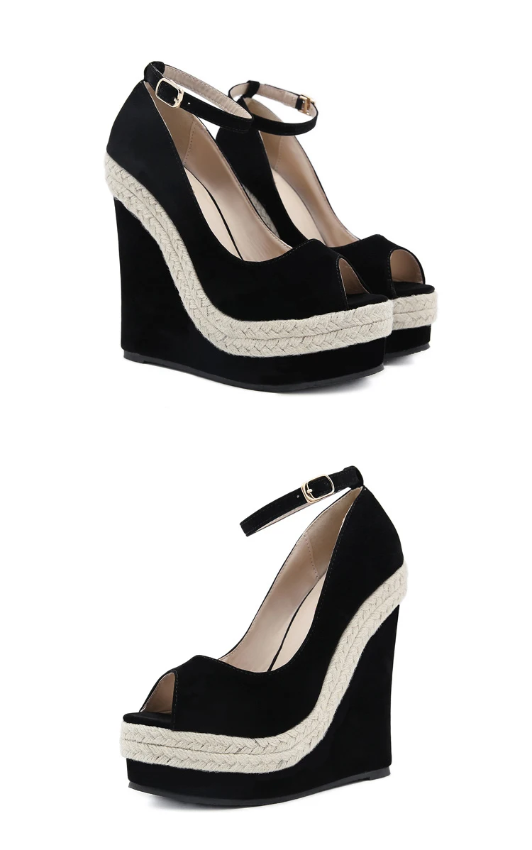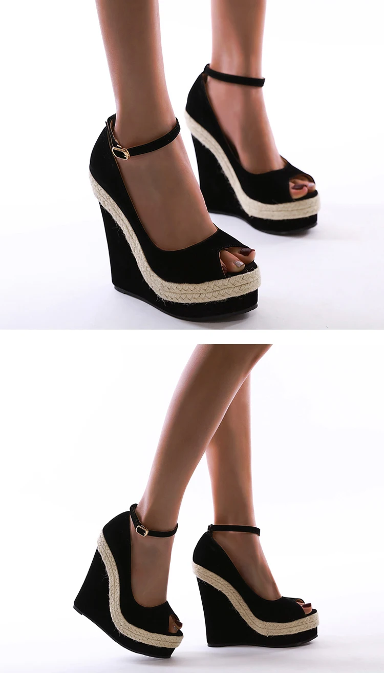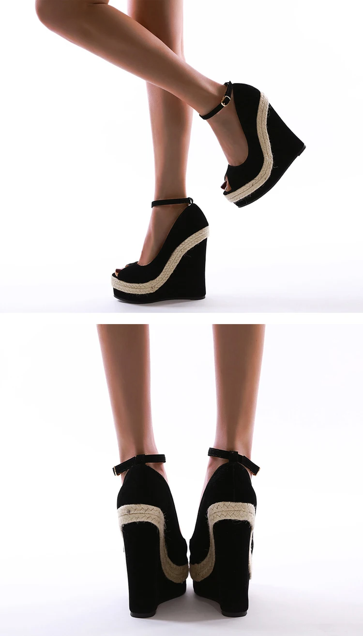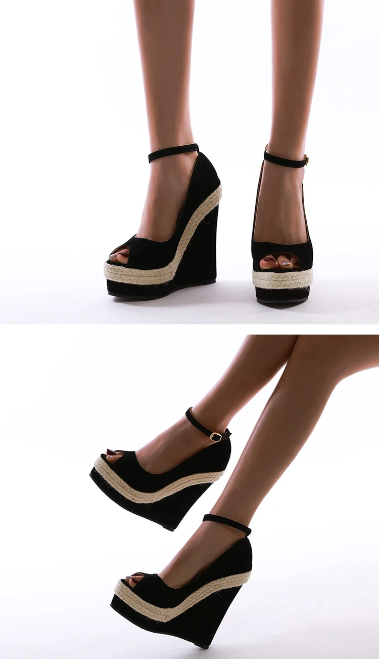 Eilyken Platform Sandals Women High Quality Flock Fabric Peep Toe Fashion Ankle Buckle Strap Wedge Heels Ladies Dress Shoes