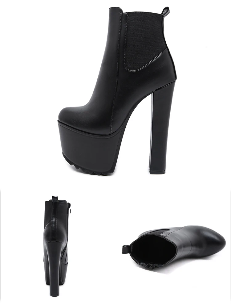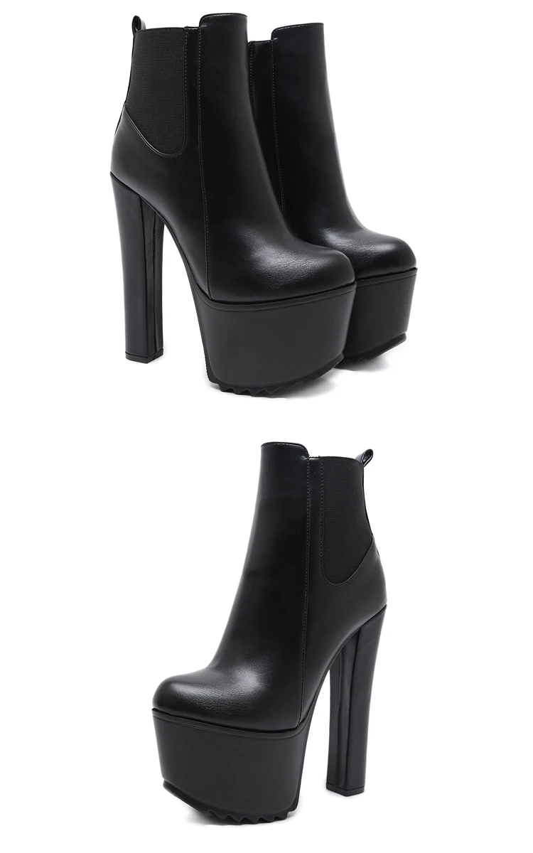 EilyKen PU Leather high heel Boots Winter Women Ankle Boots Fashion Zipper Platform Thick Heels Female Boots Shoes Size 34-40