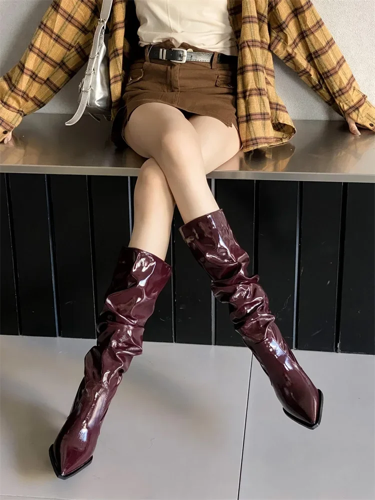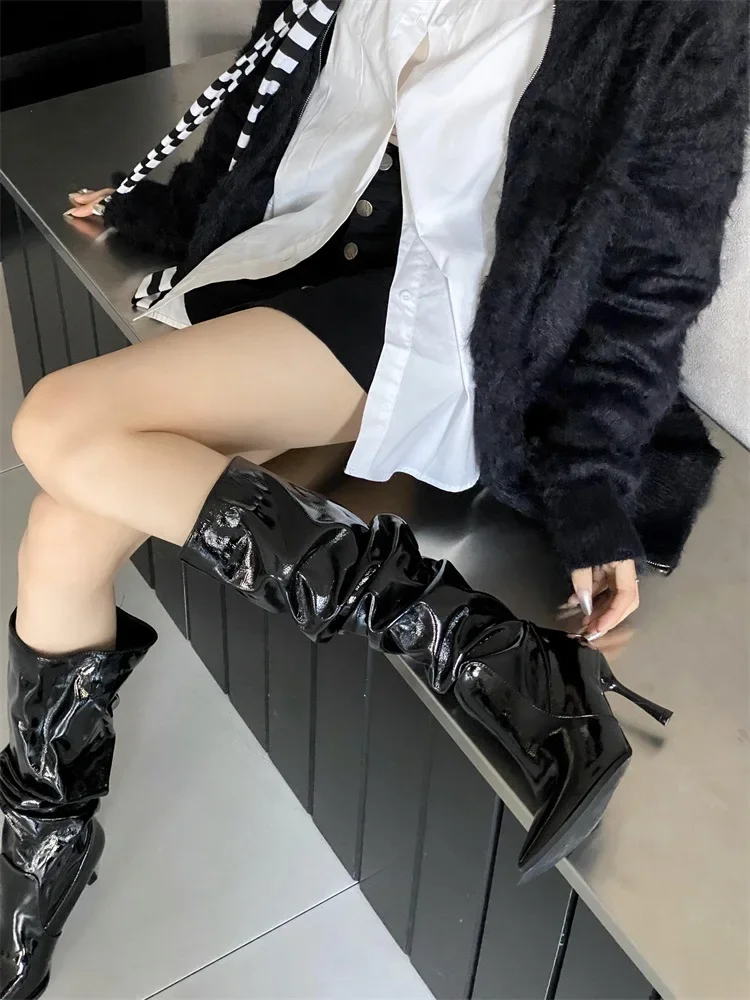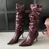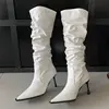 Eilyken Punk Style Winter Pleated Pointed Toe Women Knee-High Long Boots Sexy Thin High Heels Stripper Female Shoes