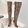 EilyKen Serpentine Peep Toe Hollow Out Over The Knee Boots Woman Sexy Lace-up Nightclub Party Thin High Heels Shoes