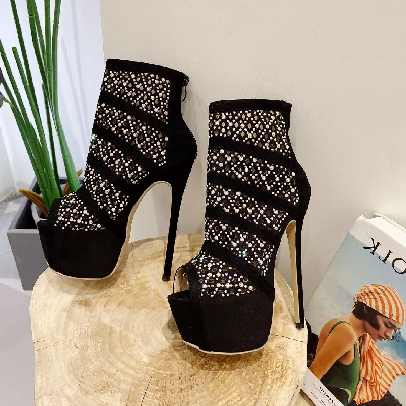 Eilyken Sexy Hollow CRYSTAL Platform High Heels Boots Sandals Women Peep Toe Nightclub Party Stiletto Female Spring Shoes