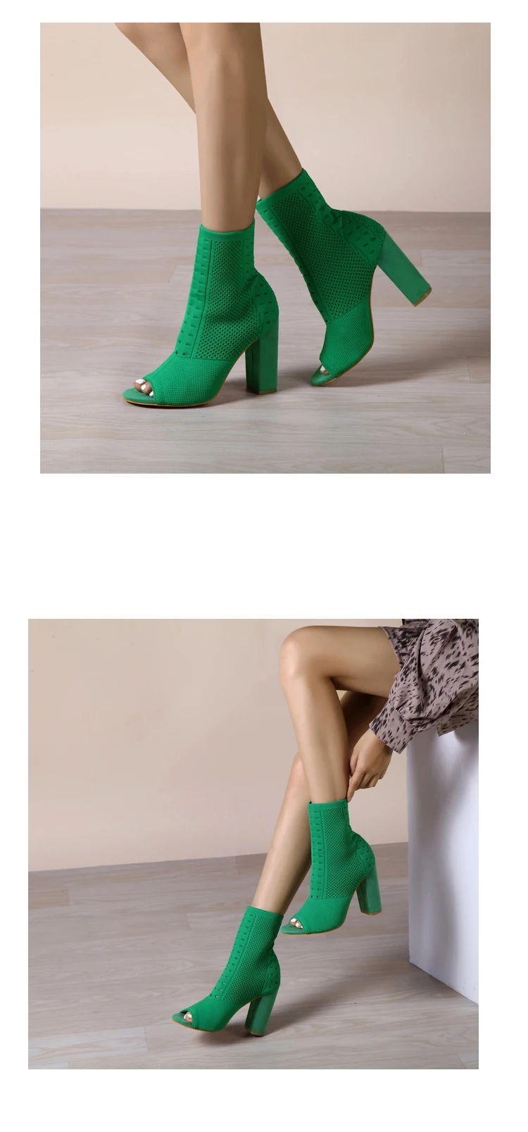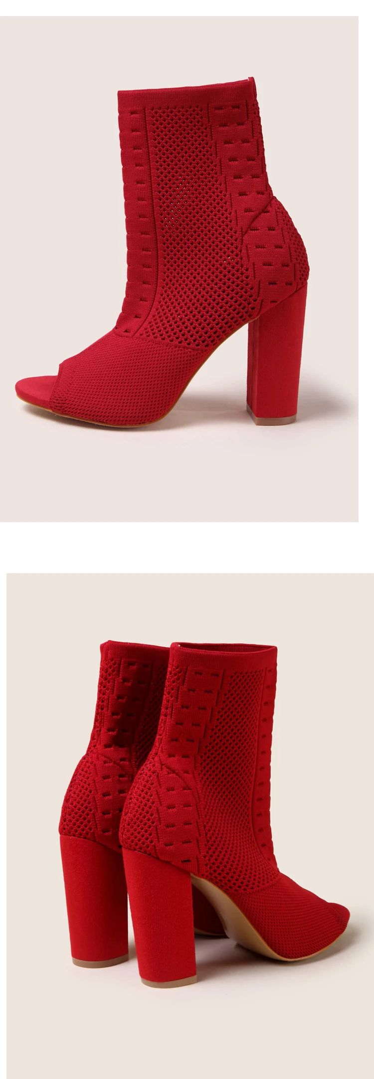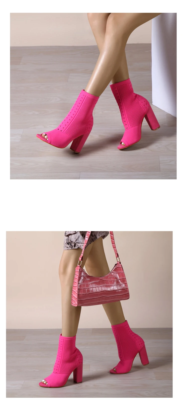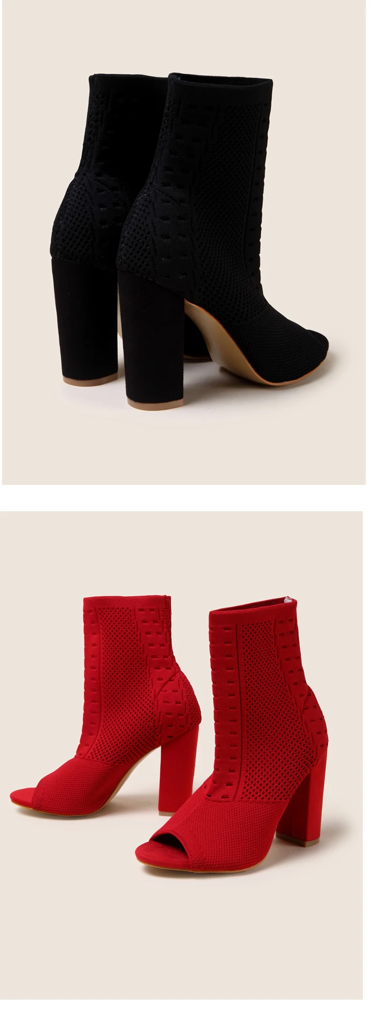 Eilyken Spring Autumn Fashion Peep Toe Knitted Stretch Fabric Socks Boots Women Square High Heels Dance Shoes Zapatos De Mujer