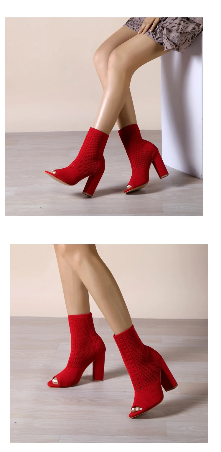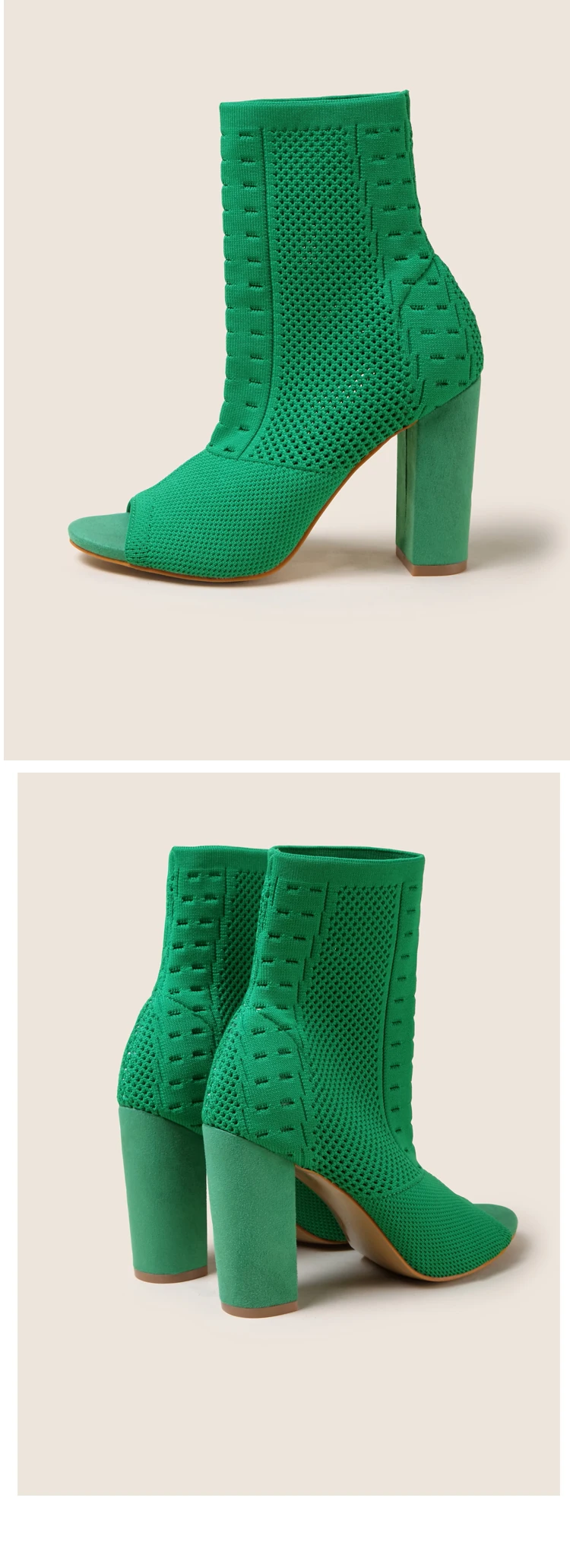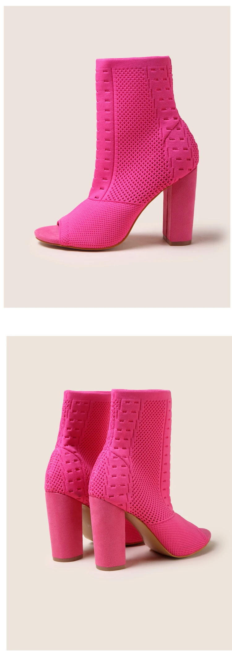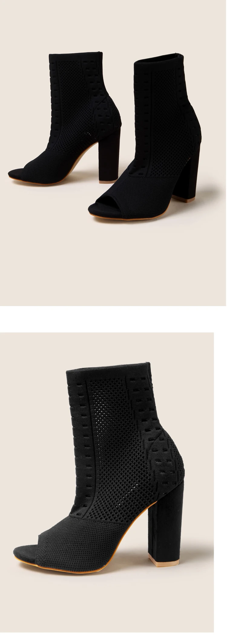 Eilyken Spring Autumn Fashion Peep Toe Knitted Stretch Fabric Socks Boots Women Square High Heels Dance Shoes Zapatos De Mujer