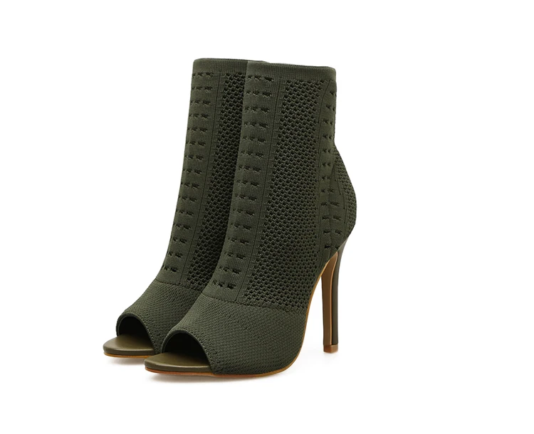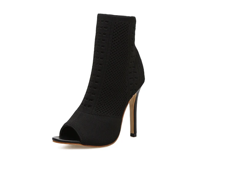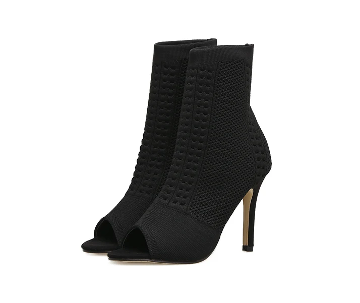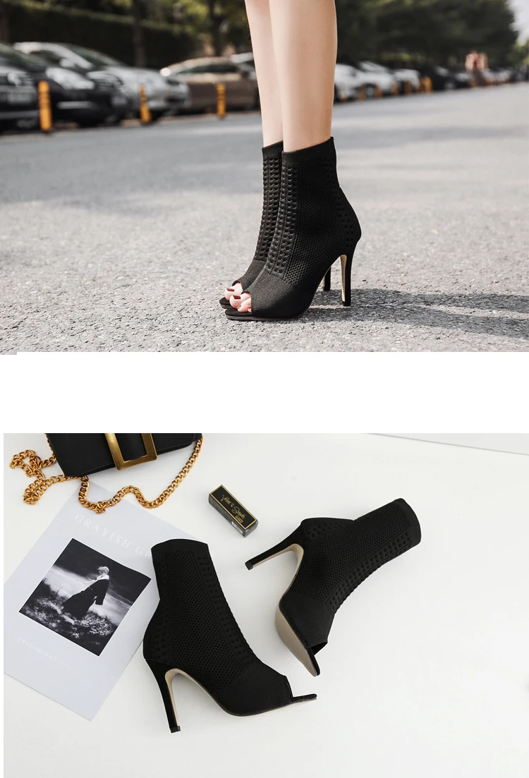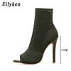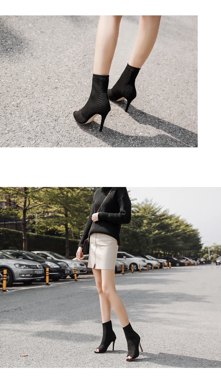 Eilyken Spring Design Ankle Boots Women Peep Toe Knitted Stretch Fabric Booties Sexy Cut-Out Stilettos High Heels Shoes