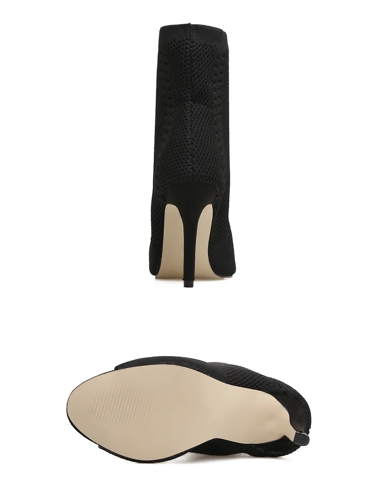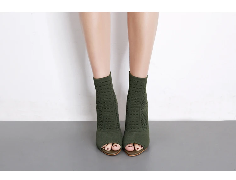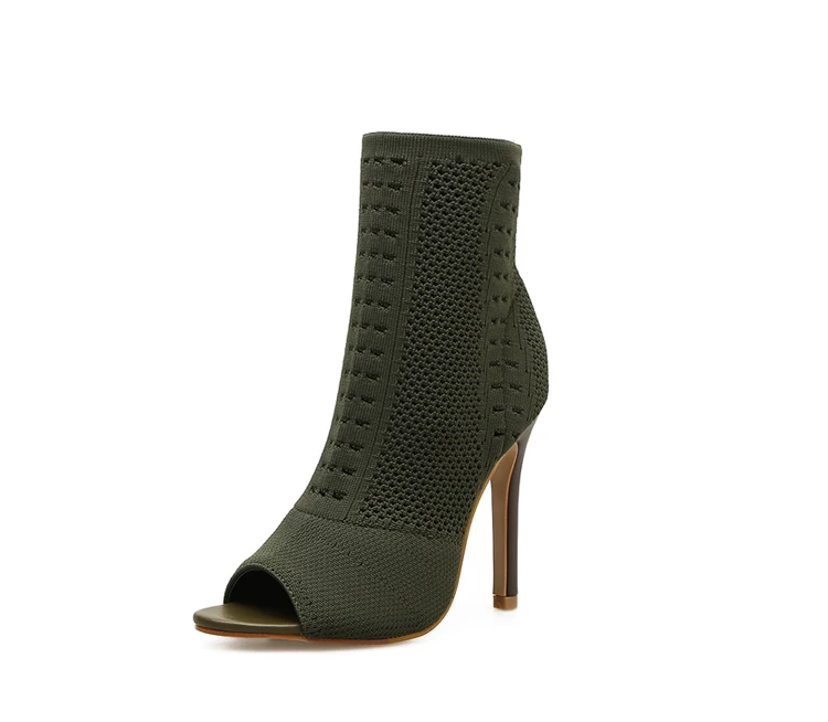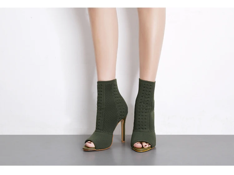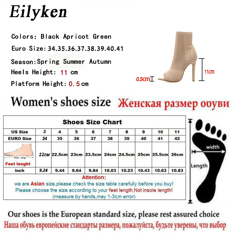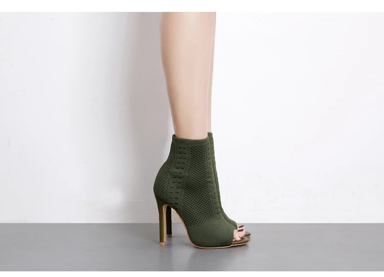 Eilyken Spring Design Ankle Boots Women Peep Toe Knitted Stretch Fabric Booties Sexy Cut-Out Stilettos High Heels Shoes
