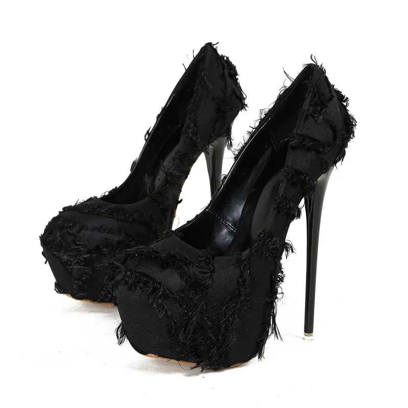 Eilyken Spring Round Toe Women Pumps Thin High Heels Nightclub Shoes Sexy Design Faux Fur Platform Zapatos De Mujer