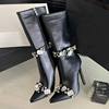 Eilyken Street Style Design CRYSTAL Women Knee-High Boots Sexy Pointed Toe Thin Heels Zipper Stripper Winter Ladies Shoes