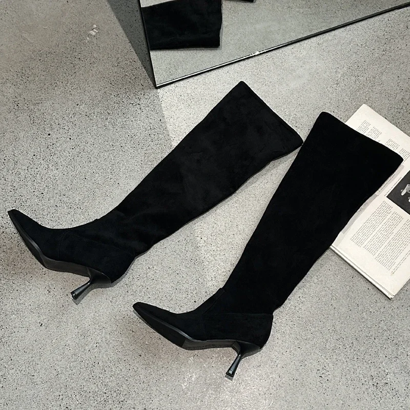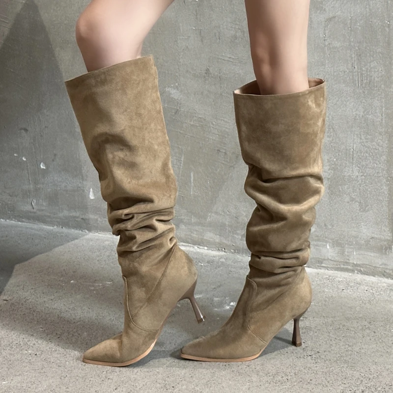 Eilyken Street Style Pointed Toe Women Knee-High Boots Sexy Pleated Thin Heels Stripper Prom Autumn Winter Shoes