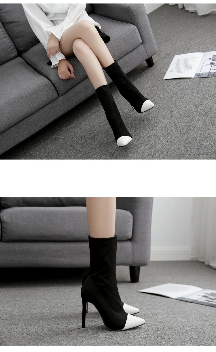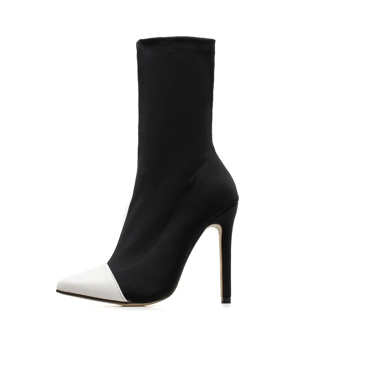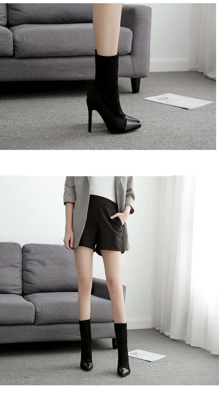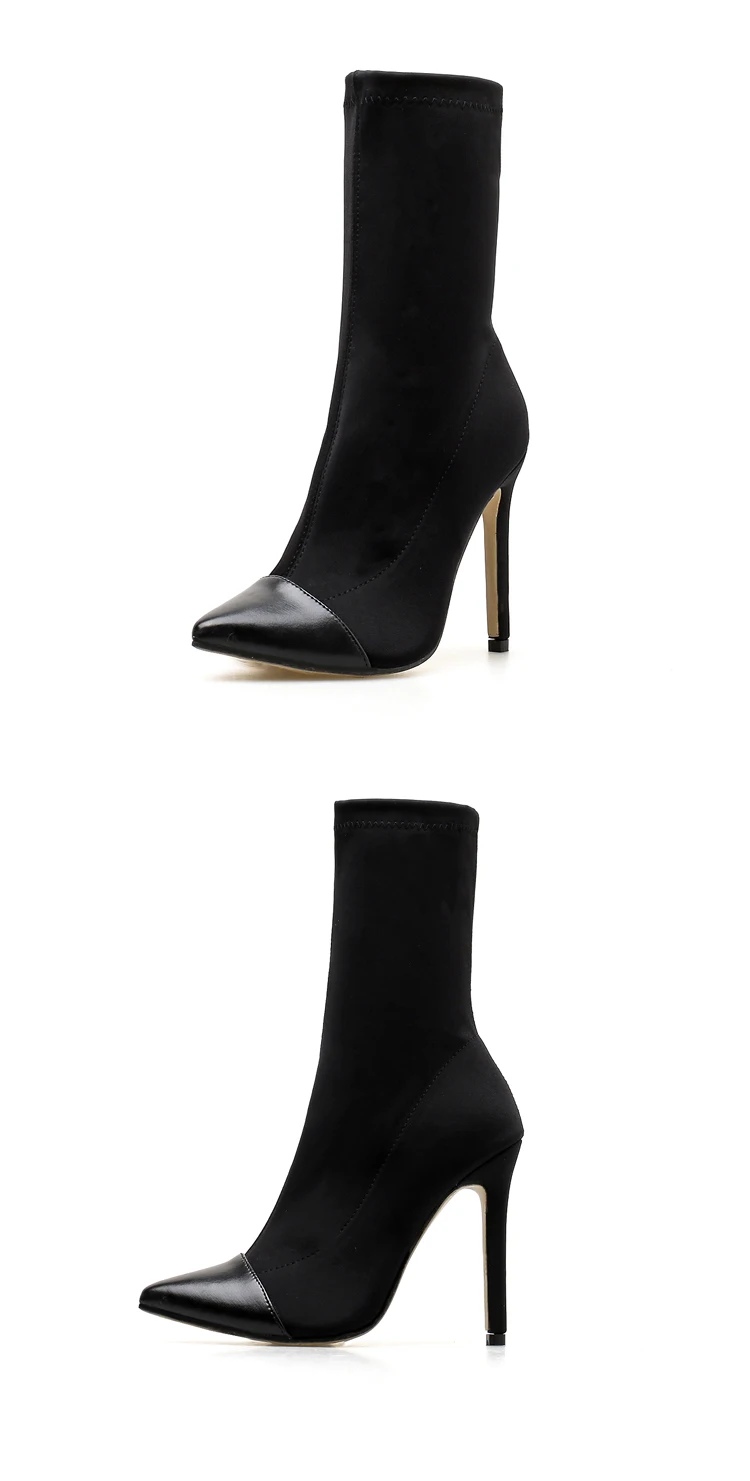 Eilyken Stretch Fabric Short Ankle Boots Women Pointed Toe High Heels Slip On Sexy Sock Zapatillas Mujer