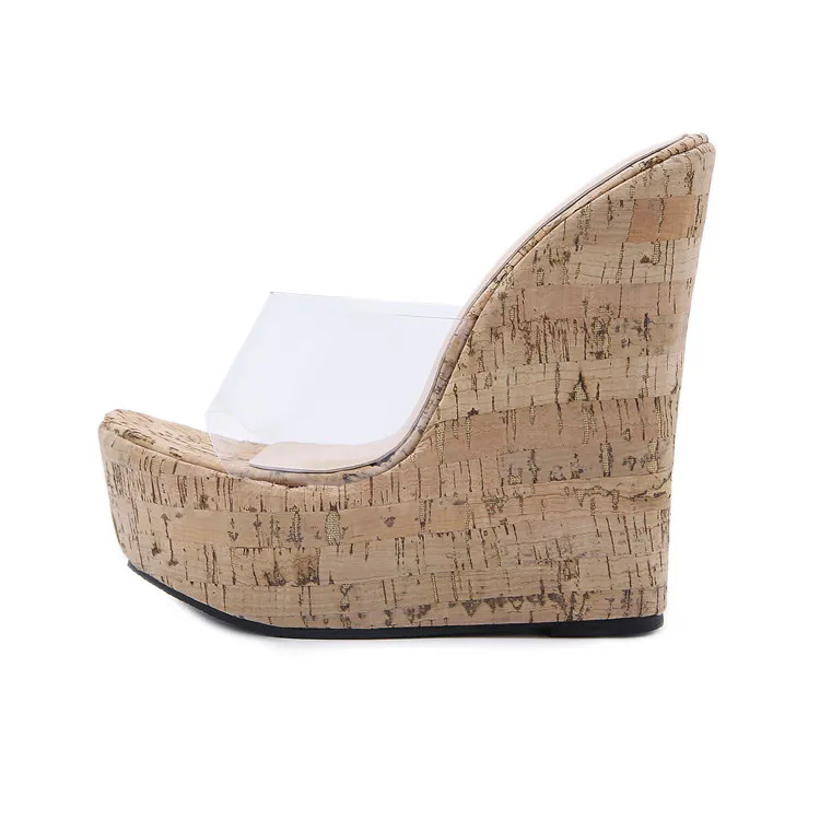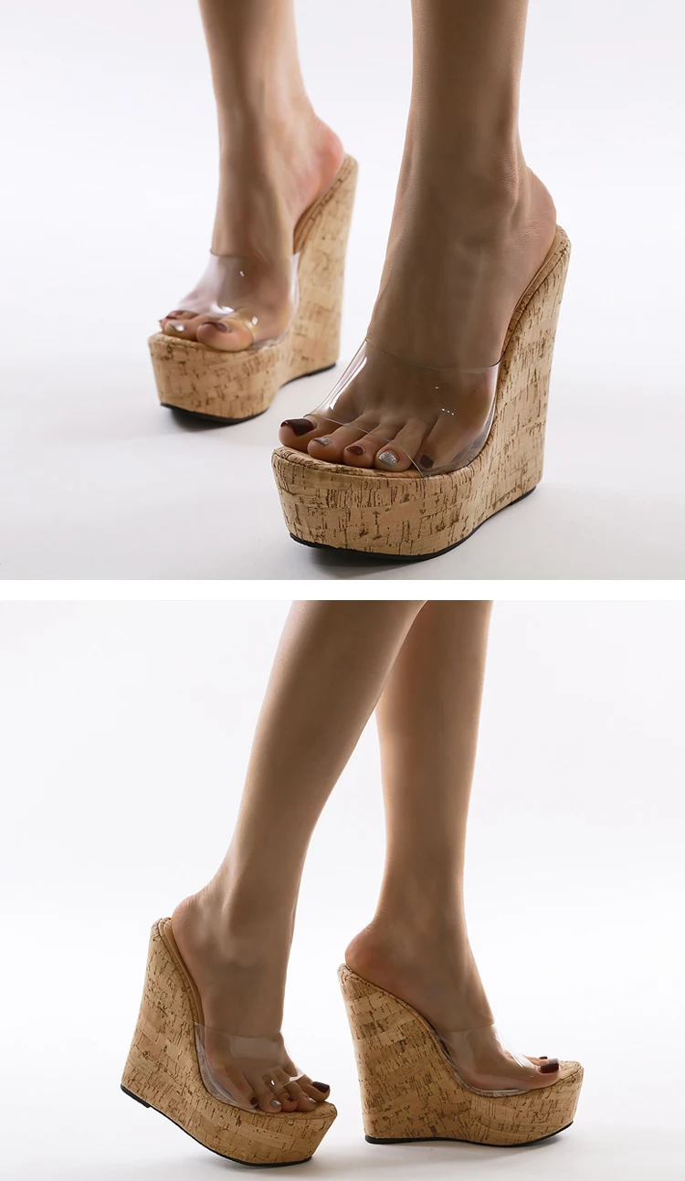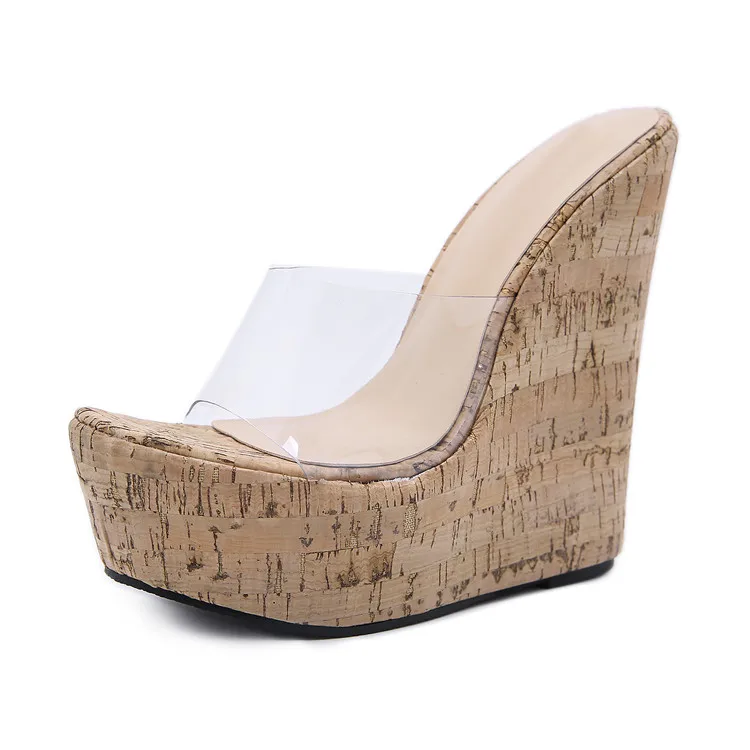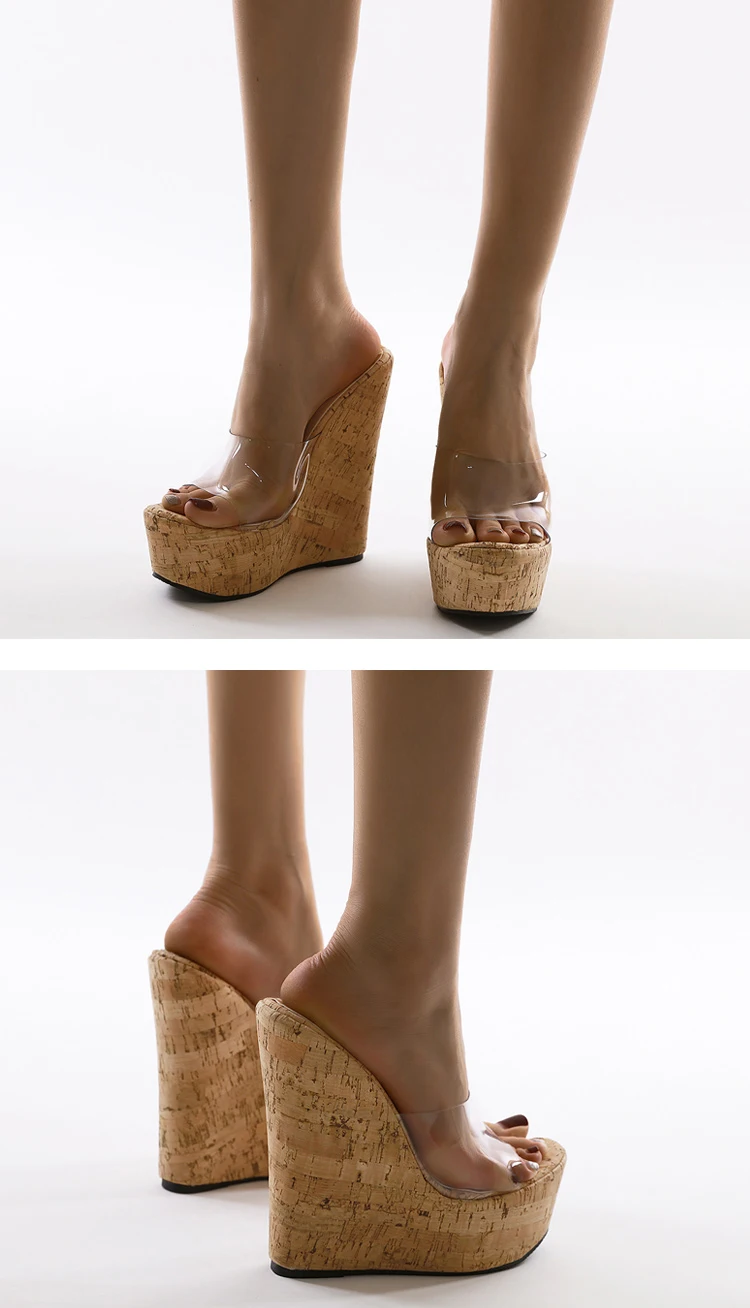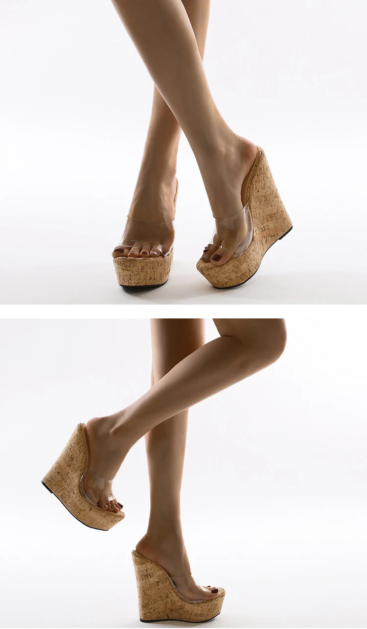 Eilyken Summer Concise Clear PVC Transparent Peep Toe Platform Wedges Slippers Sandals Women Fashion High Heels Female Shoes