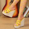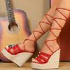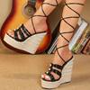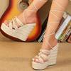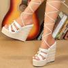 Eilyken Summer Ultra Thick Heels Wedge Platform Women Sandals Fashion Narrow Band Ankle Lace-Up Wedding Party Shoes