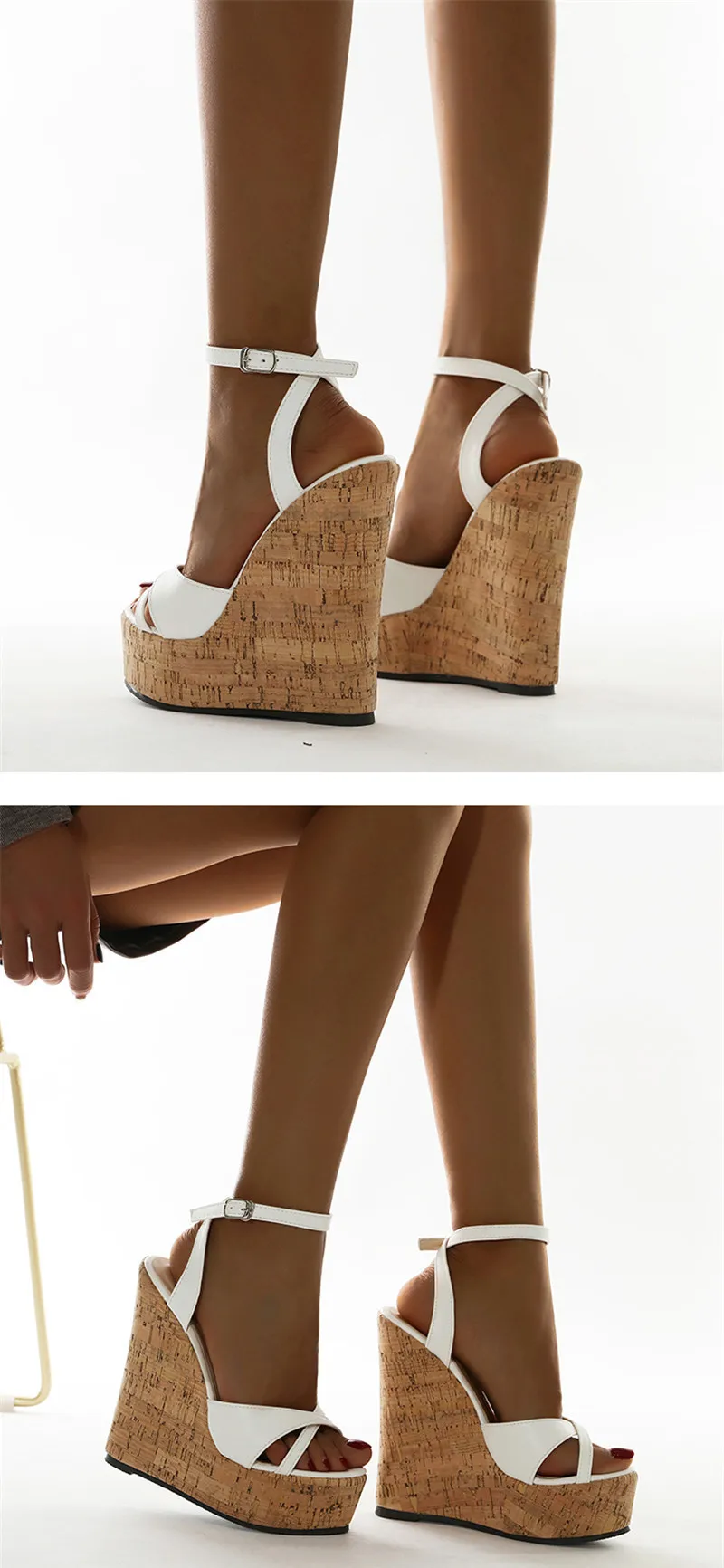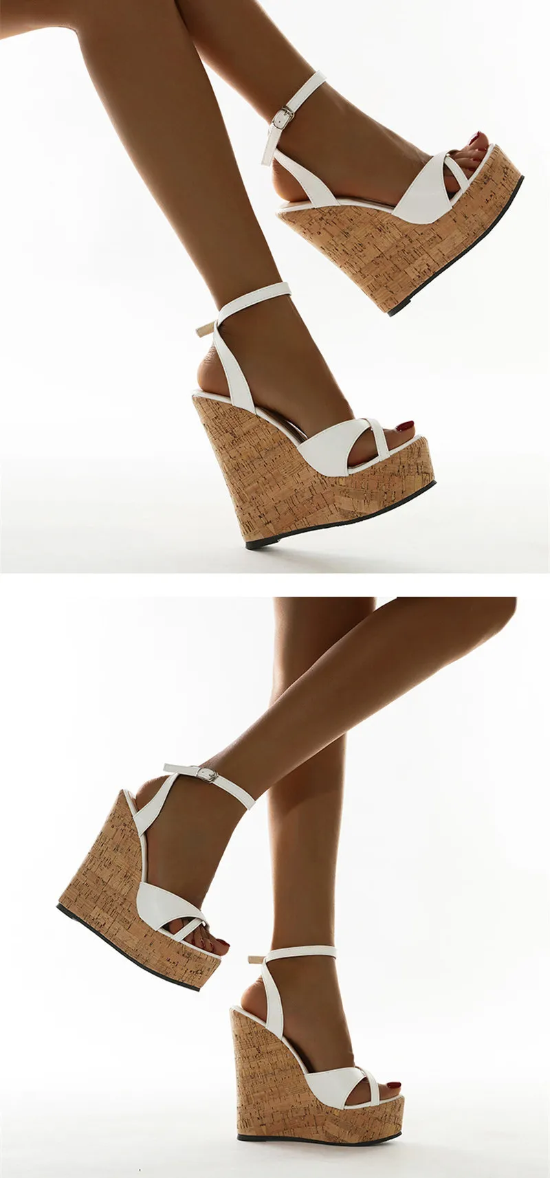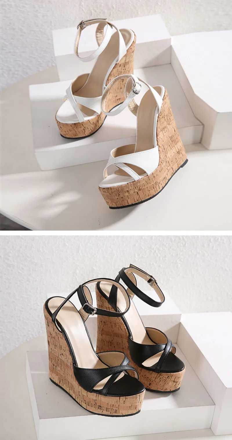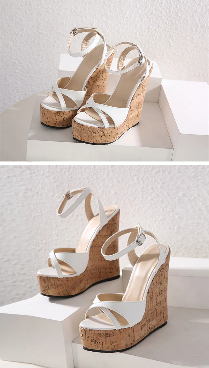 Eilyken Summer White Women’s High Heels Hollow Out Sandals Platform Buckle Wedges Front Open Toe Ladies Shoes Size 35-42