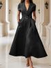 Elegant Black Women’s Dress Office Lady Temperament Short Sleeve A-Line Long Dress Female Midi Party Vestidos Robe With Belt