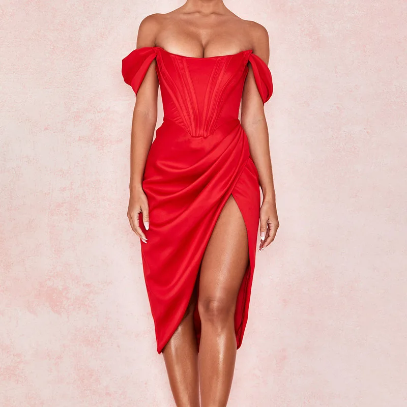 Elegant Dress Shoulder Edding Fishbone Evening Dress With VestidosDress Summer PartySexy Prom Party Dress Clothing Landuxiu