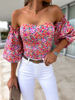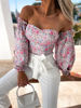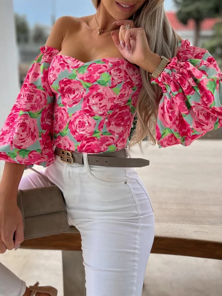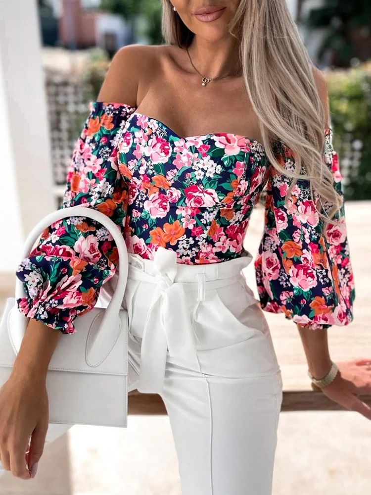 Elegant Flowers Pattern Printed Blouse Sexy Off Shoulder Puff Sleeve Pullover Tops Spring Summer Women Fashion Bohe Shirts Blusa