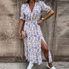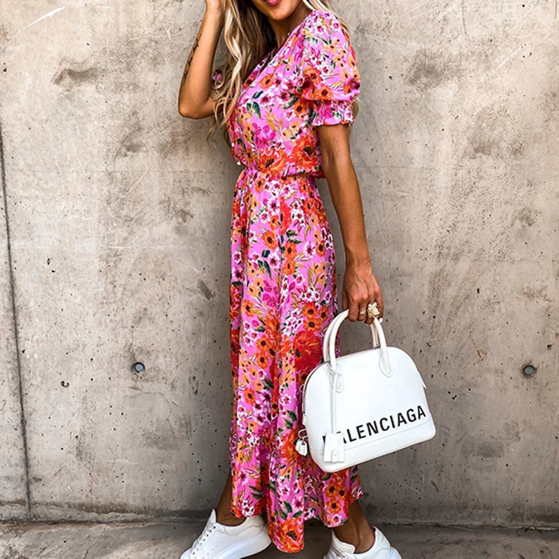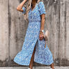 Elegant Gorgeous Floral Print Party Dress Women 2021 Summer V Neck Button Split Long Dress Spring Short Sleeve A-Line Maxi Dress