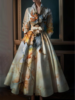 Elegant Leaf Pattern Maxi Dresses Multicolor Stand Collar Long Sleeve Long Dress Party Wedding Evening A-Line Dress Vestido