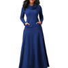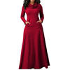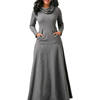 Elegant Long Maxi Dress Spring Winter Warm High Collar Women Long-sleeved Dress 2024 Woman Clothing With Pocket