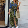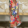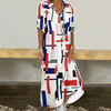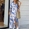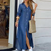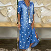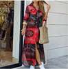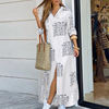 Elegant Maxi Beach Dress Women Button Down Long Shirt Dress Summer Chain Print Lapel Neck Party Dress Casual Long Sleeve Vestido