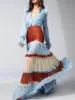 Elegant Ruffle Dress for Women Tiered A-Line Sweet Lantern Sleeve V-Neck Patchwork Layer Long Dress for Spring Autumn 2025