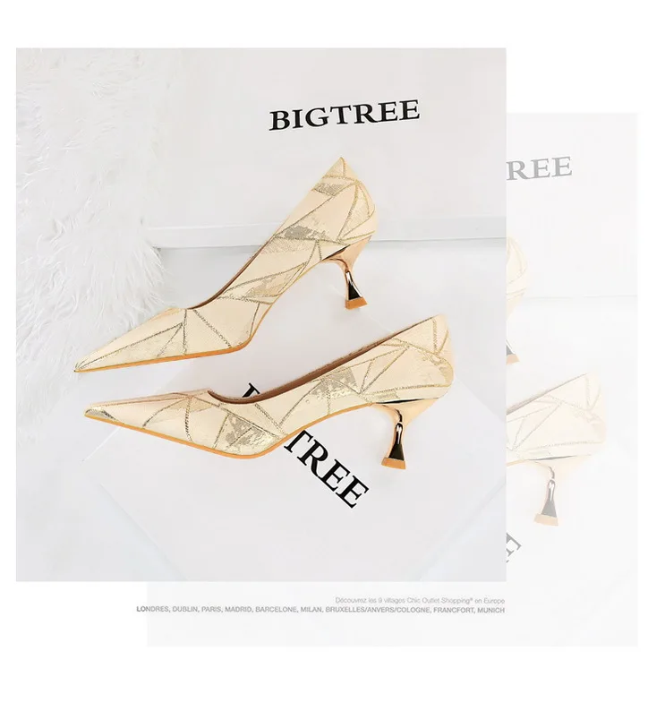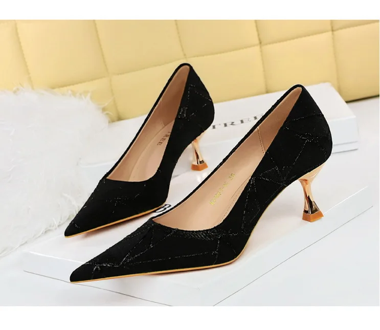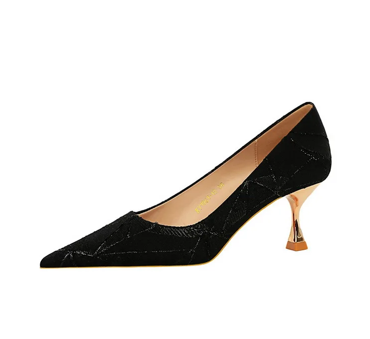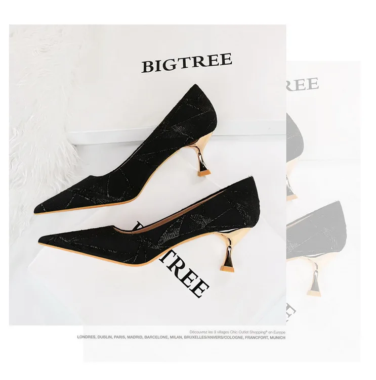 Elegant Woman Heeled Shoes Sexy Metal Heel Cloth Surface Shallow Mouth Pointed High Heels Heels for Women Free Shipping
