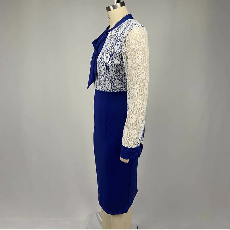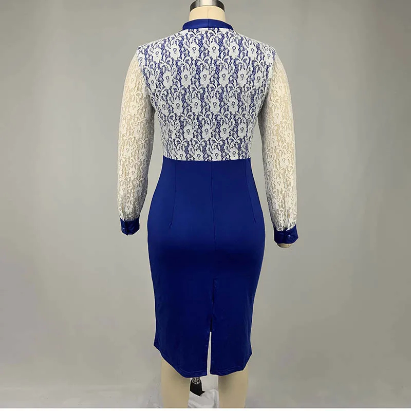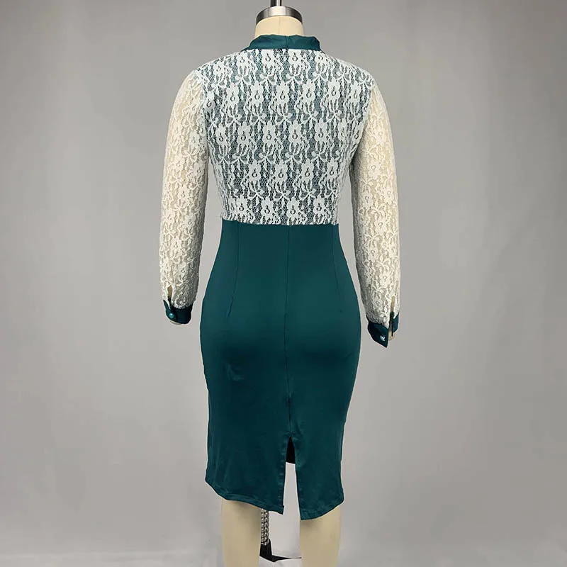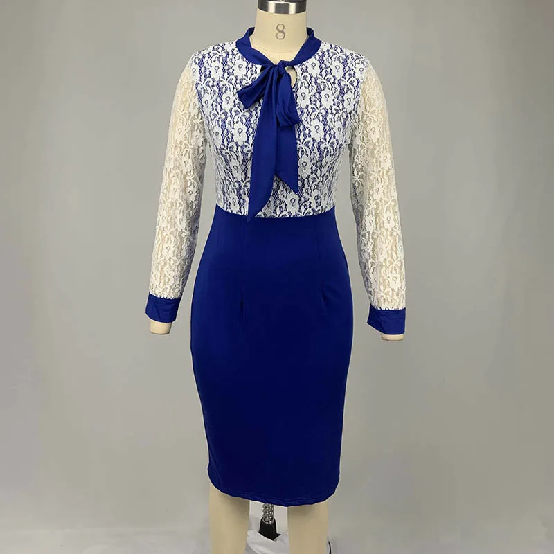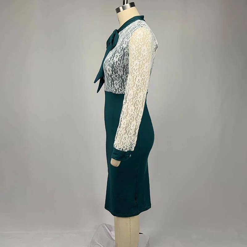 Elegant Women Dress 2021 Autumn Fashion Lace Patchwork Long-sleeved Office Ladies Dresses Vintage Casual Slim Dress Vestido